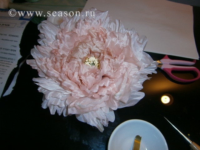 Анжел Опубликовано 2 мая, 2014 Поделиться #730 Опубликовано 2 мая, 2014 Всем доброго здравия и благополучия в наступившем году:)Хочу показать вам, дорогие гости моего Альбома, новый цветок над которым сейчас работаю. Опять пион... Наверно один из самых моих любимых цветов:)) На прошедших выходных успела сделать только венчик. На следующих хочу закончить листики и полностью собрать брошь. Все материалы для цветка краски, ткани, проволоку, инструмент я заказывала в на японском сайте.Приятного просмотра:)Дорогие мои подруги и гости Альбома:)Сегодня я хочу показать вам один прекрасный долгостройНе прошло и .......4-х месяцев и родился интерьерный цветок:)))))Сначала я хотела сделать брошь или заколку. Но размеры венчика без листиков очень внушительные. Для броши надо цветочек поменьше. Докроила дополнительно листочки, а те что были заготовлены заранее я покрасила в более темный оттенок зеленого.Выкройки лепестков и листиков это микс нескольких вариантов пионов изияпонских книг по шелковой флористике. И еще такую брошку я повторила. Мой любимый цвет и размер:)(еще есть несколько цветочков не сфотографированных. Телефоном получается темные фото, не видно деталей).Приятного просмотра.:)) Нет лучшего учителя, чем личный опыт.Берёт дорого, но преподаёт отлично!!! Ссылка на сообщение Поделиться на другие сайты Поделиться