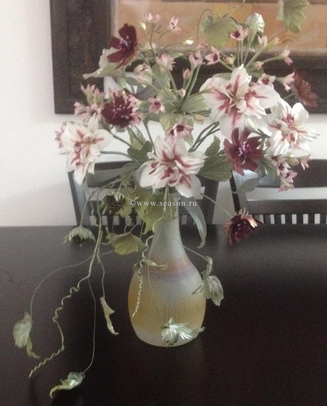 Анжел Опубликовано 19 сентября, 2015 Поделиться #848 Опубликовано 19 сентября, 2015 Остальные цветы и веточки из букета я делала по японским книгам и кое где включала смекалку:) Вот еще такие были цветы.. С подругой мы выяснили что это декоративный луквот несколько фотографий процесса работы на этим цветком. И вот такие были веточки с ягодками и касмеи. Ягодки из бисера. Приятного просмотра:) (продолжение будет, но чуть поздней:)...) Нет лучшего учителя, чем личный опыт.Берёт дорого, но преподаёт отлично!!! Ссылка на сообщение Поделиться на другие сайты Поделиться