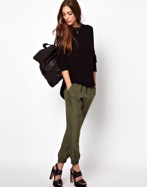 Теперь они прочно вошли в обиход, шьются из разных тканей и носятся в разных обстоятельствах. Мне тканевые нравятся больше, чем трикотаж, их куда угодно можно вписать, хоть в классический комплект. И они удобны тем, что дружат с разной обувью: от спортивных кроссовок до лодочек.