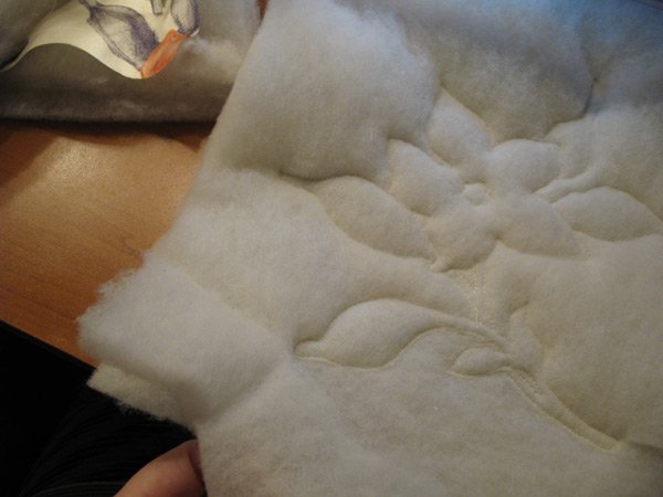 тоже цветики стегала с синтепоном, причем на цветиках слой синтепона двойной, потом близко к стежке второй слой обрезала