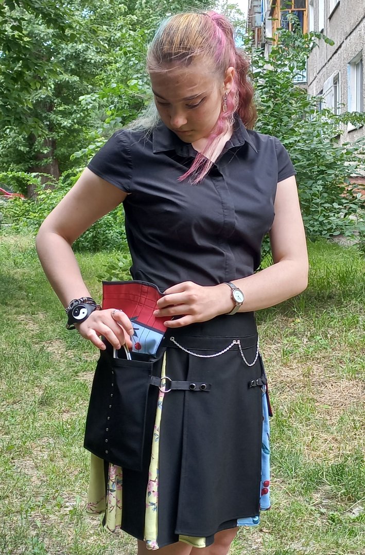 Мама Ксюша Опубликовано 26 июня, 2021 Автор Поделиться #228 Опубликовано 26 июня, 2021 (изменено) Мы это сделали, йоу! Мы ее осилили! Вчера ночью закончили с Олей юбку стимпанк. Показываем! 🙂 Одних клиньев у основы юбки - 22 :)) Дней пять сшивали, пришивали, давили люверсы, блочки, кнопки. Ух! Пояс с карманами и фартуками сшит отдельно и пришит к юбке. Сзади на кнопках, отстегивается, чтобы было комфортно снимать и надевать юбку. Карманы с клапанами действующие, объемные, как любит Оля. В них с легкостью входит и теряется телефон :)) Клапаны со стороны юбки специально сделали яркими, чтобы такой был эффект всполоха при открытии. Цепочка продета через люверсы насквозь. Карабины пришиты крепко, тоже действующие. Если надо будет вдруг :)) Ткани - вискоза с небольшим добавлением синтетики. Вот такие у нас новости 🙂 Изменено 26 июня, 2021 пользователем Мама Ксюша Alya Klimenko, klauliia, ЛюбовьА и 20 других 22 1 Как Мама Ксюша деток принаряжает Как Мама Ксюша взрослых принаряжает ВК Мамы Ксюши Ссылка на сообщение Поделиться на другие сайты Поделиться