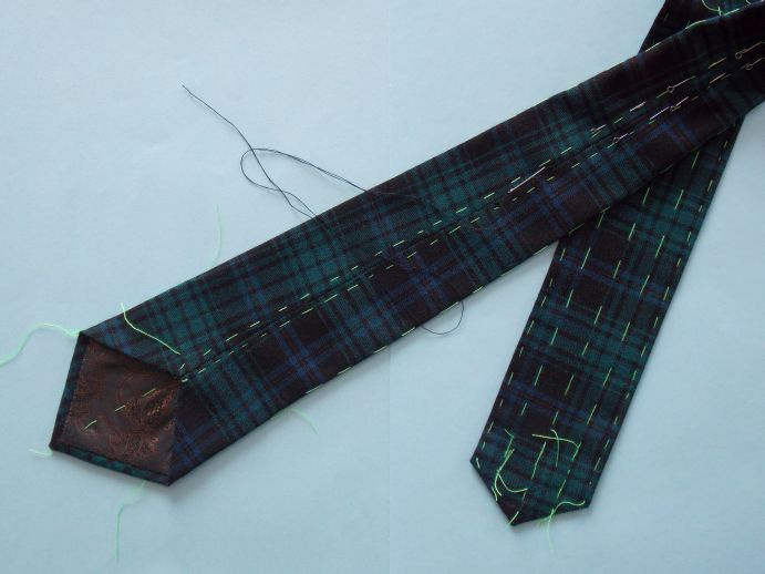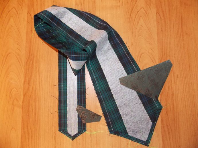Мама Ксюша Опубликовано 14 марта, 2017 Автор Поделиться #36 Опубликовано 14 марта, 2017 (изменено) Ой, как я рада. Освоила еще один новый для себя вид изделия. Вот буквально вечером закончила. Мк - пошив галстука. Это галстук. http://s2.rimg.info/2e5081f35ae106314c2e0d660c870a37.gifПеред 8 Марта шила одной красавице на заказ из костюмной шерсти в клетку юбку-"полусолнце" в пол. Фото у меня, правда, нет, хозяйка увезла юбку в отпуск :) А в комплект она заказала из этой же костюмки косынку на шею и галстук, как мужской, только меньшего размера. Вот и появился у меня повод научиться шить настоящий галстук.Я углядела на просторах инета мастер-классы, чьи, даже не знаю. Потом нашла информацию некоторую на этом форуме (в очередной раз спасибо мастерицам). И крутила в руках настоящий галстук мужа. Вот как я шила свой галстук. Это "крайние" части выкройки, среднюю я чертила сразу на ткани и флизелине, ткань это позволяла. Я читала, что галстук обычно кроится из двух или трех частей, которые потом сшиваются. На моем отрезе ткани получилось выкроить одну большую деталь. Я ее продублировала клеевым флизелином. Из подкладочной ткани выкроила внутренние части галстука. Их тоже продублировала. Дальше я подгибала и сметывала детали по контуру, каждый раз отглаживала утюгом. Контрастной наметкой же обозначила все вертикальные линии (центра и сгибов). Дальше наложила подкладочные детали на основные, и вручную пришила потайным швом. Верхние открытые срезы деталей из подкладочной ткани получилось обжечь зажигалкой, зафиксировать.Потом я согнула галстук по боковым линиям к центральной вертикальной линии, сколола булавками. И вручную сшивала средний шов. Прочитала в нескольких местах, что на машинке этого делать не стоит, может все перекосить. Убрала наметку, все отгладила. В моем случае обошлась без вспомогательных картонок, опять же, ткань позволила. Пришила на изнанке по широкой части поперечную ленточку, чтобы фиксировать узкий конец галстука. И вот что у меня получилось Изменено 14 марта, 2017 пользователем Jioti Как Мама Ксюша деток принаряжает Как Мама Ксюша взрослых принаряжает ВК Мамы Ксюши Ссылка на сообщение Поделиться на другие сайты Поделиться