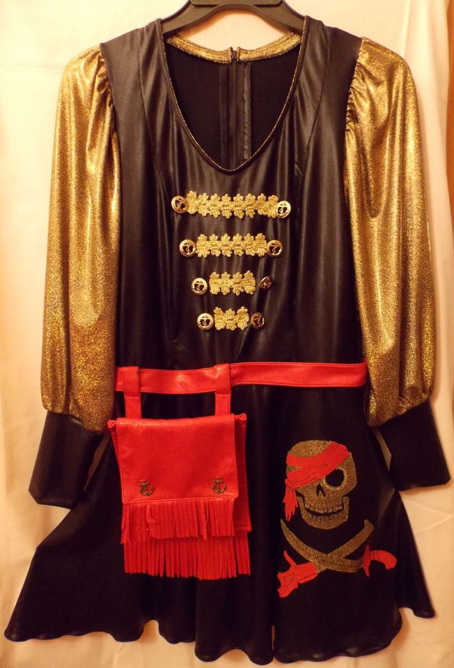 Мама Ксюша Опубликовано 12 марта, 2017 Автор Поделиться #28 Опубликовано 12 марта, 2017 (изменено) Поработала с аниматором :) Девушке был нужен костюм Пиратессы. Изначально она пришла с совсем другой идеей. Но в процессе пошива, примерок и совместного творчества получился вот такой костюм :) Хозяйка осталась довольна. Костюм состоит из: платья, нижней юбки, банданы и сумки. Ткани: лайкра с напылением в виде кожи, лайкра с голографическим накатом. Нижняя юбка из плательного крепа, для пышности нашиты рюши из сетки. Платье украшено аппликацией из лайкры с накатом. Эскиз сделал мне сын, спасибо ему (как уже писала в детской теме, он у нас художник, с отличием закончил художественное отделение школы искусств). Аппликация наклеена с помощью паутинки, потом прошита по контуру мелким зигзагом. Глазница украшена клеевыми стразами. Хозяйка попросила сумку, чтобы по сценарию вынимать оттуда разные мелочи. Придумалась такая пиратская сумочка на поясе. Сшита из лайкры с накатом, продублирована красной джинсовой тканью. Украшена металлическими подвесками в виде якорей. И вот такая в итоге получилась девушка-Пират. Изменено 12 марта, 2017 пользователем Мама Ксюша Как Мама Ксюша деток принаряжает Как Мама Ксюша взрослых принаряжает ВК Мамы Ксюши Ссылка на сообщение Поделиться на другие сайты Поделиться