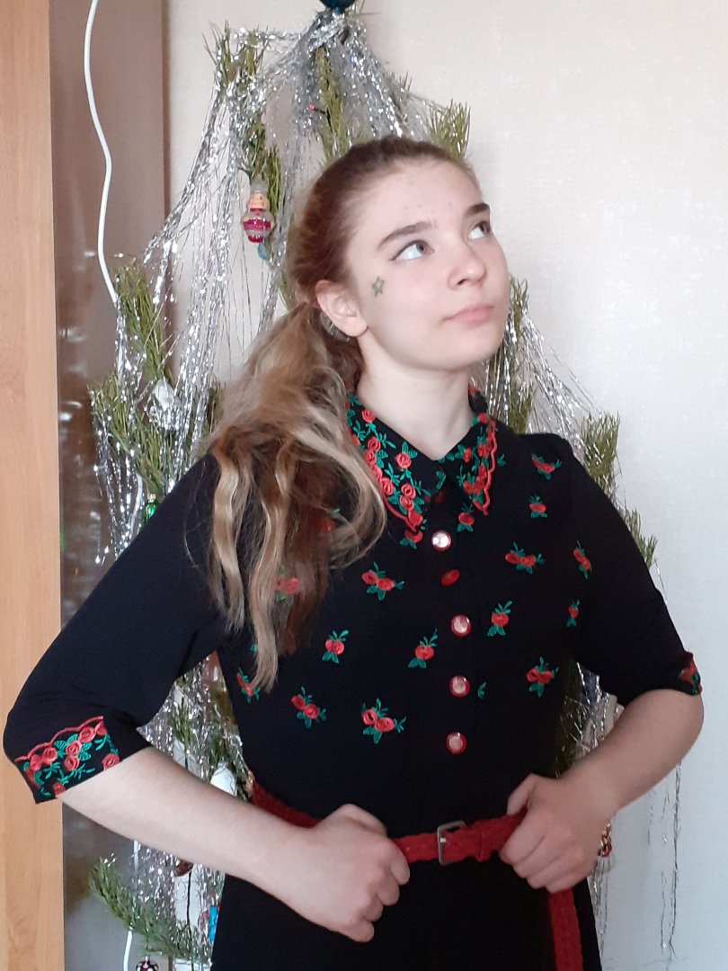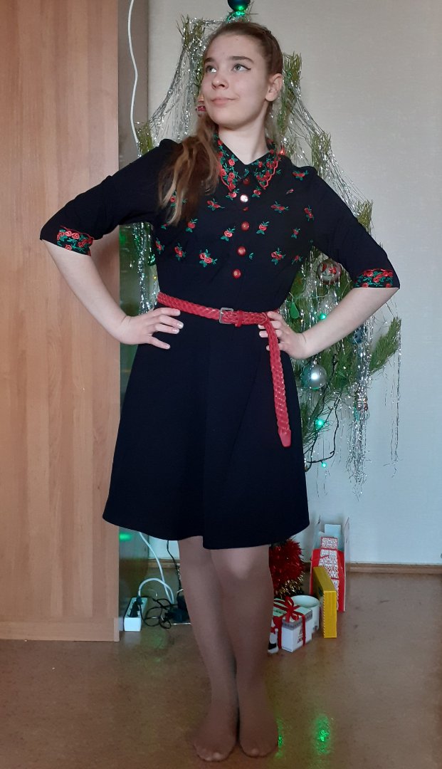 Мама Ксюша Опубликовано 1 января, 2021 Автор Поделиться #191 Опубликовано 1 января, 2021 Дорогие мои мастерицы. С наступившим вас Новым 2021 годом! ? Счастья вам, творческой неугомонности, выполнения планов и исполнения желаний! Путь все-все получается. (Этот уютный и теплый домик и пушистая елочка - подарок от моего старшенького ? ). А я хочу показать результат своей работы Дедом Морозом ? Платье-рубашка для любимой доченьки. Оля предложила Деду Морозу эскиз, мы вместе скатались в магазин, где она выбрала ткани и фурнитуру. Так что Деду Морозу осталось только воплотить идею в жизнь. И успеть с этим до Нового года. Работа кипела 30 и 31 декабря. И в 7 вечера таки была закончена! Дети тем временем сами шуршали на кухне над угощениями, так что оставалось только помочь им дорезать салаты :)) Итак, новогоднее платье-рубашка Ткани - черная вискоза, вышитое кружево на черной сетке. Выкройка построена и смоделирована индивидуально. Прототипов нет ? На талии пока кожаный ремень. Но планируется пояс с пряжкой из этих же тканей. Чтобы подарок считался настоящим новогодним, хозяйка посидела в обновке и с подаренной кружкой под елочкой. И Оля в новогоднем наряде и при полном параде на празднике relegen, маня, КапуткА и 17 других 19 1 Как Мама Ксюша деток принаряжает Как Мама Ксюша взрослых принаряжает ВК Мамы Ксюши Ссылка на сообщение Поделиться на другие сайты Поделиться