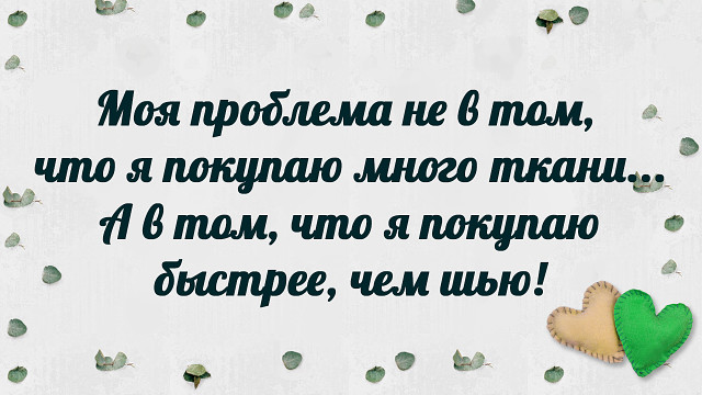 Светлана.Саратов Опубликовано 30 августа, 2018 Поделиться #180 Опубликовано 30 августа, 2018 Idi 2,такую картинку можно ставить в пин - посте каждой. Здесь все такие, страдающие одной болезнью, по имени хомякоз 🐹. Как-то прошла мимо Вашей темы. Сейчас погуляла, посмотрела. Шитье Ваше аккуратное, чистое, уютное. Желаю легких стежков и ровных строчек. «Я знаю, чего хотят женщины. Они хотят быть красивыми». Валентино https://vk.com/id49589366 https://www.instagram.com/svetlana__krikunova/ Ссылка на сообщение Поделиться на другие сайты Поделиться