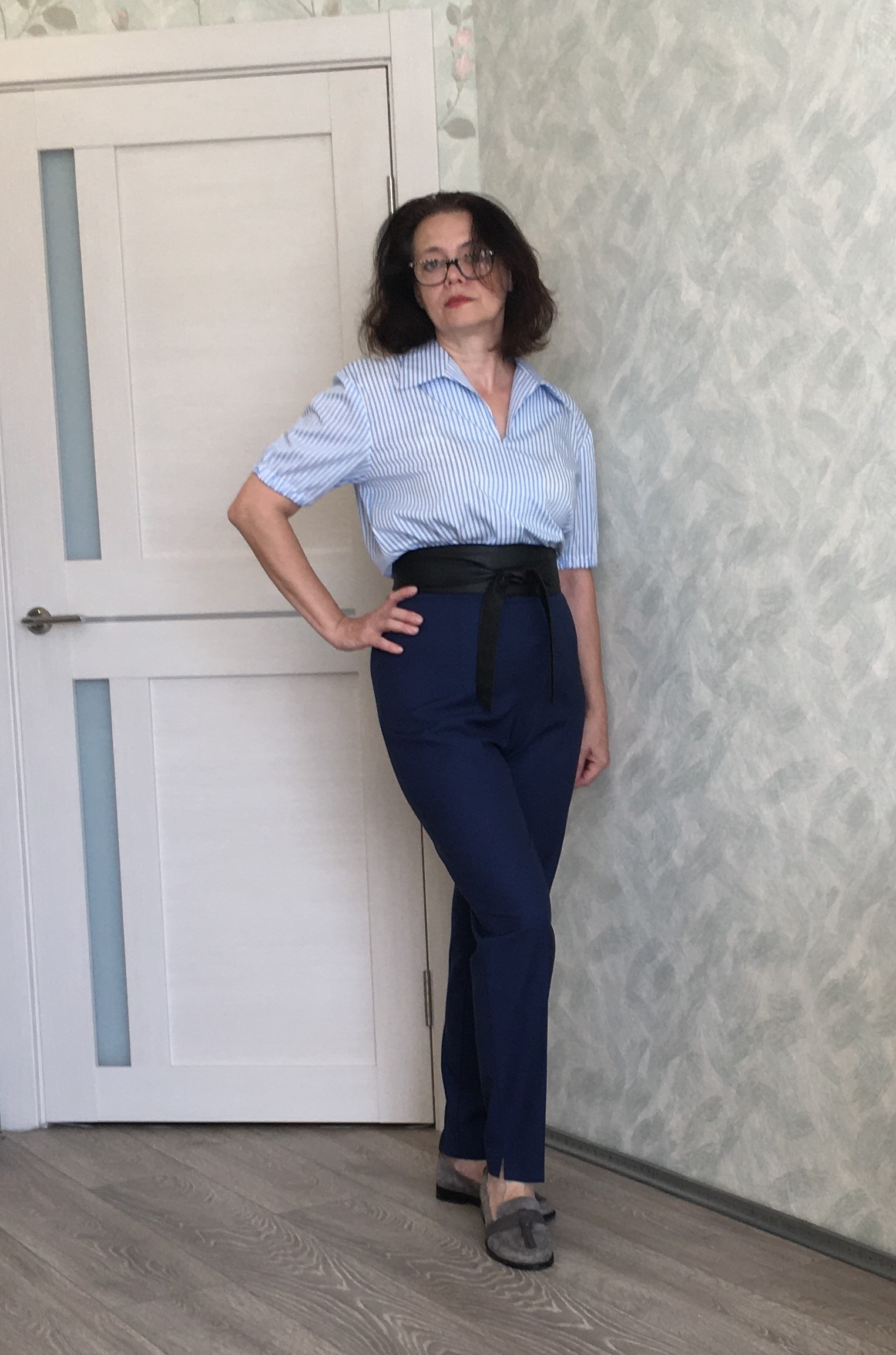 La_da Опубликовано 12 июля, 2020 Автор Поделиться #580 Опубликовано 12 июля, 2020 Прошлась по теме. Столько сшито, а в домик не принесла. Исправляюсь. На это лето были сшиты две блузы из одного куска полосатого хлопка и брюки из джинсовой ткани.Блуза подсмотрена в БМ 1996/3 и очень хотелось сшить из черного шёлка. Но оказалось......её не так то и просто сделать. Поэтому довольна. что попробовала на хлопке и рукав изменила по длине. И блузочка хорошо вписалась и с новыми брюками, и со старыми, сшитыми ранее, и с юбкой джинсовой.Устроила себе маленькую хоум-фото-сессию. Брюки показывала в МиГ. Вторая блузка- распашонка, сзади встречная складка по середине спины. И штанишки джинсовые. Конечно я размахнулась сшить из 0,9 м - но получилось! Минимум на прибавку, вместо пояса резинка, вместо молнии шов с отстрочкой.: Штанишки подошли не только к распашонке, но и к блузке с воротником . А главное, блузка подошла и к джинсовой юбке, сшитой, в прошлом году. Вот такой летний микс MilaMilaM, muschka, Тилла и 2 других 5 Людмила Мой инстаграм Моя тема:Взгляд сквозь «Вуаль» Ссылка на сообщение Поделиться на другие сайты Поделиться