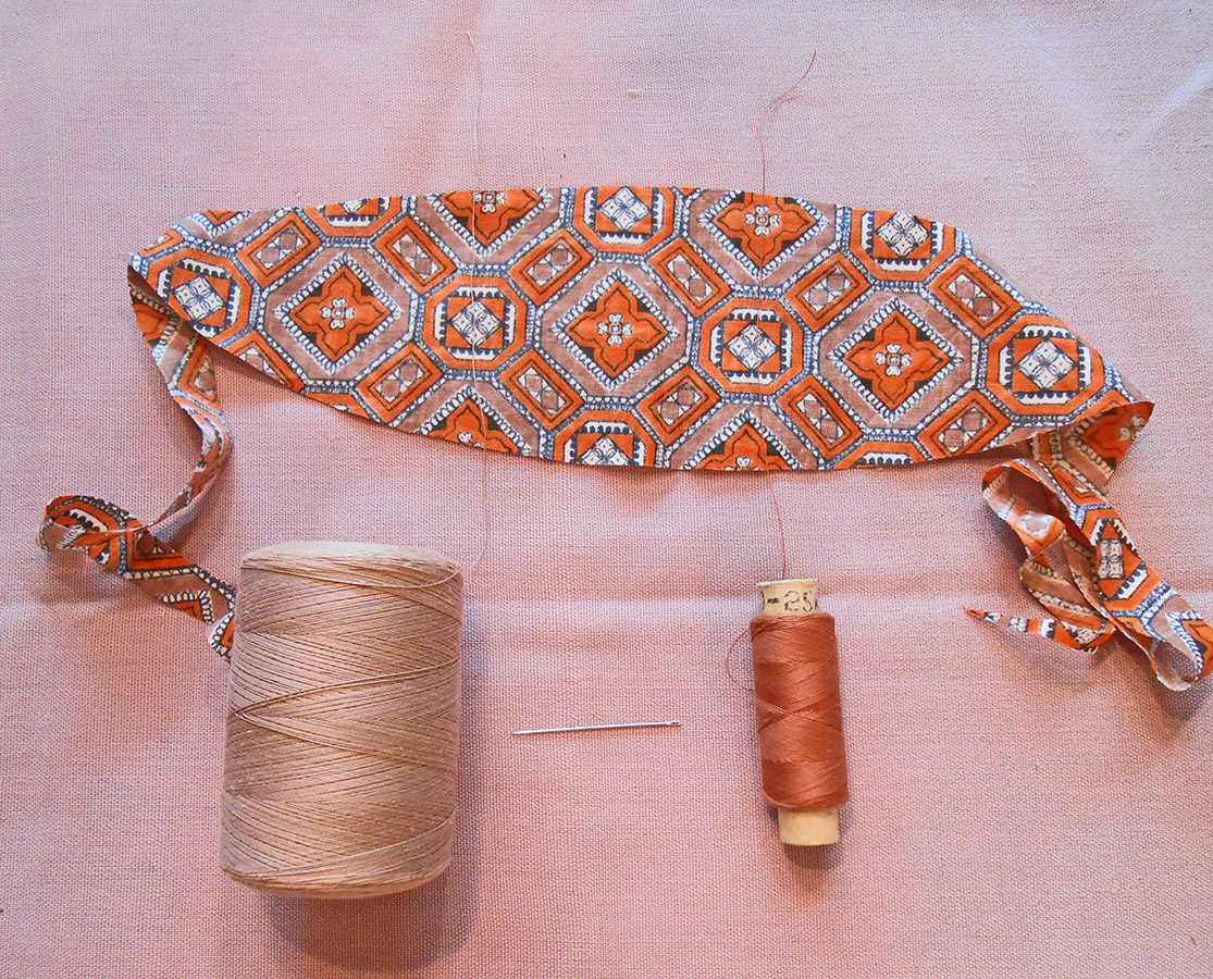 Этот мне напоминает головные уборы средневековья... Если ткань держит форму, можно попытаться придать головному платку интересный вид.