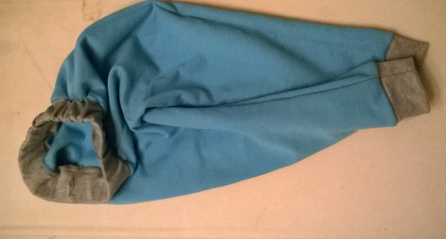 Т.к. демисезонного комбеза у нас еще нет, то понятно, что его надо шить. Т.к. мой хомяк оторвался на прошлой неделе, то шить есть из чего. Принт дюспы определил подклад: на рукава и штаны будет темно-синяя подкладочная ткань, а на остальное - бирюзовый интерлок. Выглядит все вот так (почти черное наверху - это подкладка)