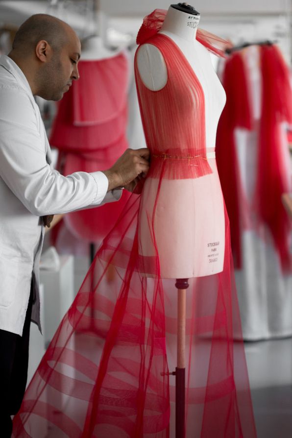 Матовая органза в вышивкой. Точно не подойдет тяжелый шифон и креп.