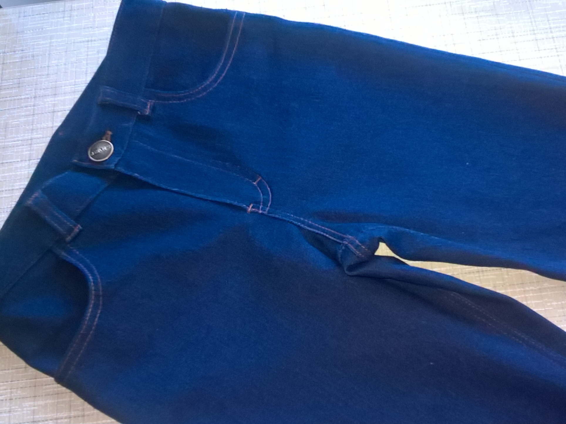 Дети растут. Вот и сын уже учащийся среднего звена. Позади все костюмы сказочных героев. Теперь он "взрослый" ;) Поэтому сначала для него были сшиты однотонные темно-синие джинсовые брюки.