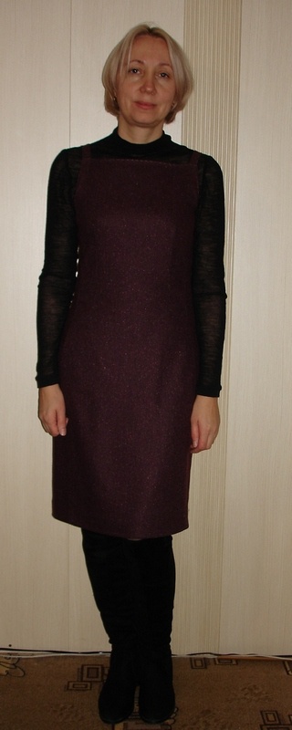 Сарафан, НЛО 5-7 летней давности), дошила, только благодаря теме. Очень сложно что-то переделывать, легче сшить с нуля. Ткани, как я понимаю, было мало, около 90 см, почему я стала его шить из такого количества ткани, ответить не могу))), вот метра хватила бы на нужную длину и подкибку см 4. Подклад вискоза-стрейч, покупала специально, т.к ткань тянется, правда перепутала изнанку с лицом, когда выкраивала, поэтому на лицевой остались полосы от белого карандаша, но они потом сотруться). Долго подгоняла, выжала из него что смогла. Длины немного не моя, я ношу подлинее, но под высокие сапоги самое -то, на подгибку низа сделала обтачки из ткани (стрейч), близкой по цвету.