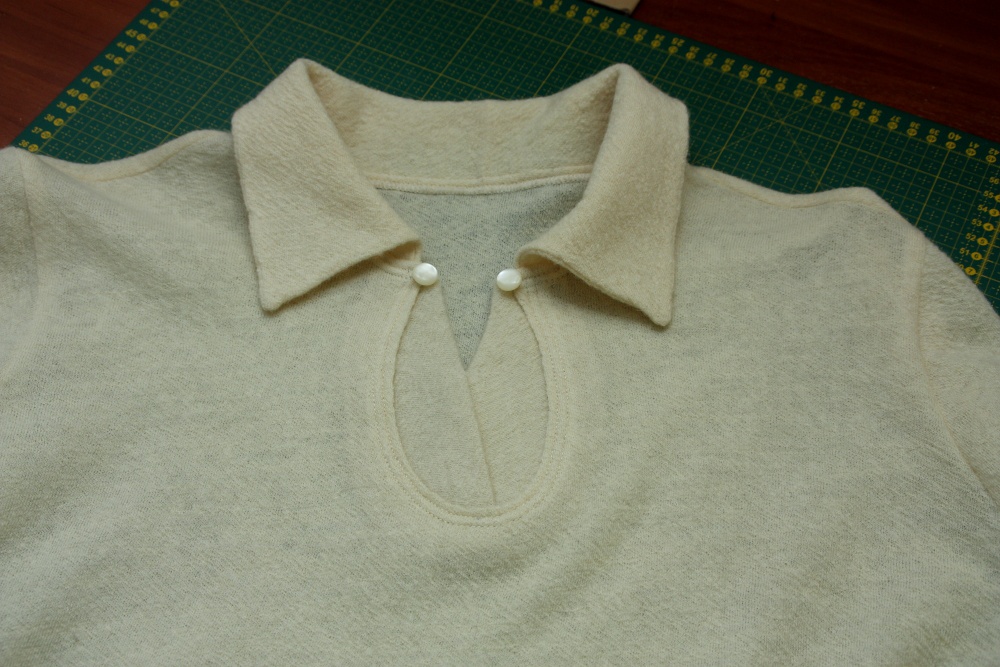 Лет пять назад зачем то вырезала капельку и потом поняла, что грудь будет мерзнуть,так и закинула, хорошо что подрезку приколола к крою:-)