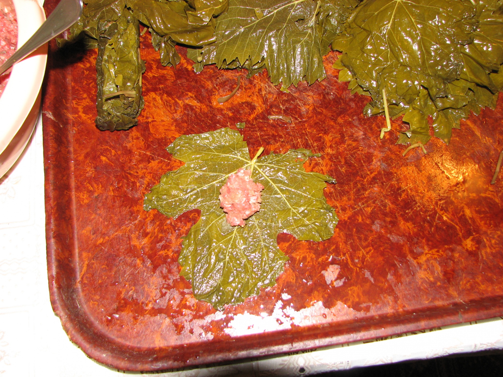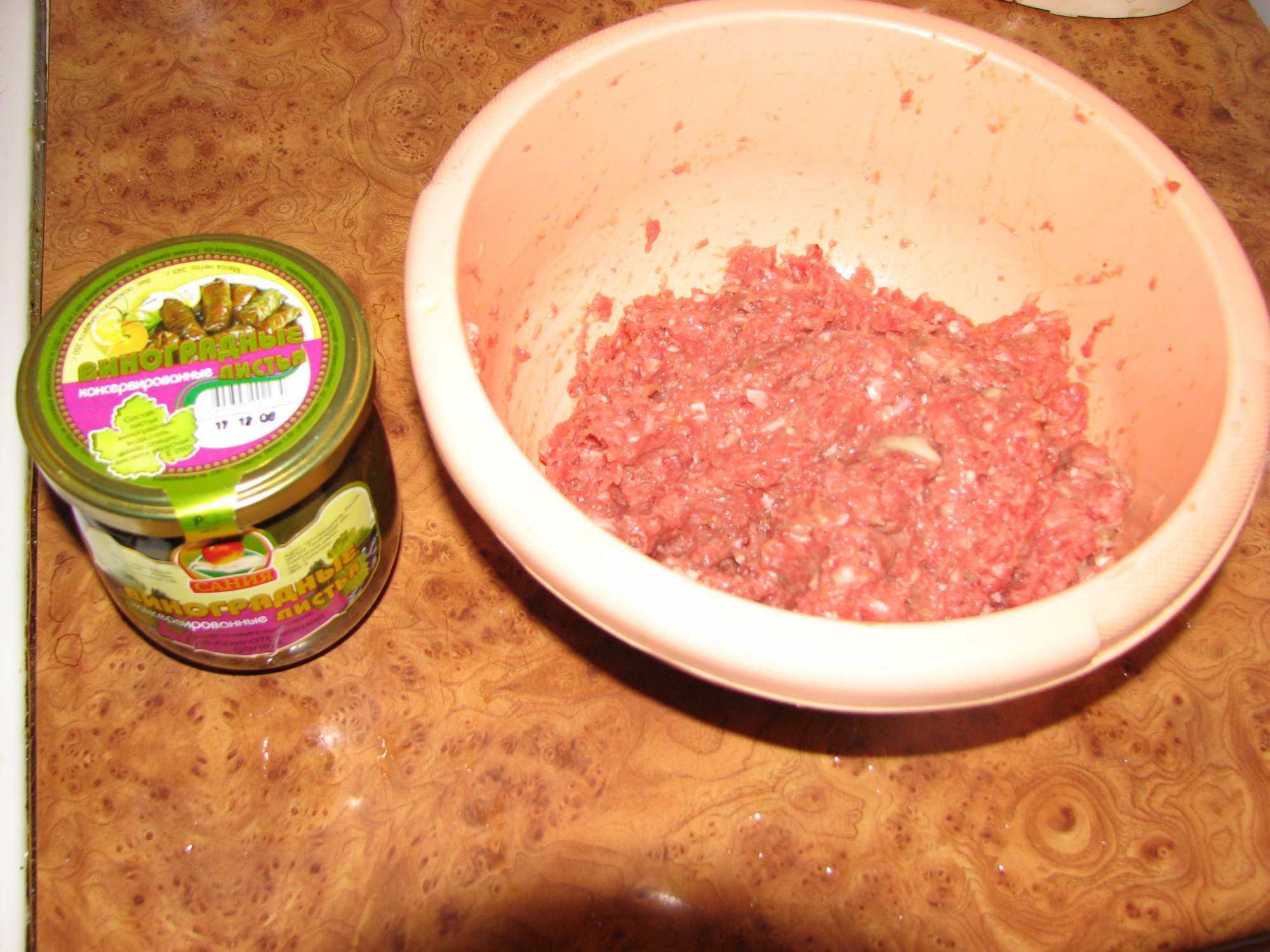 покупаем листья виноградные в банке, фарш любой, мы любим из говядины с индейкой+лук + горстка риса, заворачиваем в листочек, все в кастрюльку + воды и ставим томится на час.
