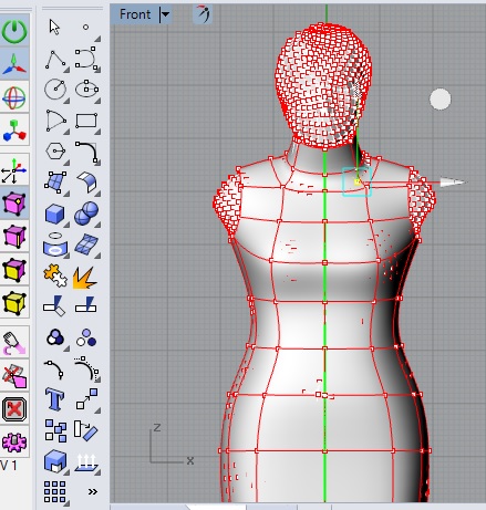 FashionFan Опубликовано 30 октября, 2017 Поделиться #1290 Опубликовано 30 октября, 2017 Решила построить себе манекен облипку начиная его не с фасетки, а сразу с обжатия примитива "кирпич" :-), как упоминала Тамара Гаспар в этом посту ну заодно и лишний раз потренироваться.Надо сказать, что процесс пошёл намного быстрее, да и в кубическом модусе мне работать нравится. Когда манекен построила, то применила команду Pull, чтобы манекен сильнее притянулся к поверхности. Но притянулся он до того сильно, что пришлось опять потправлять все точки, рёбра и фасетки. Тем не менее результат мне нравиться. Этот способо построения у меня теперь в фаворите. Просьба к "профи" посмотреть на мои линии горловины и особенно плеча и оката рукава. Правильно ли всё или где-то необходимо откорректировать? Шею вытянула специально длиньше. Ассимметрию ещё не исправляла. Думаю может быть сначала построить симметрично также рукава, а только затем уже в конце процесса отключить симметрию и подправить своои разные плечи? И ещё у меня стали почему-то одновременно включаться точки на манекене, когда я включаю точки на т-сплайн поверхности. Как это устранить? Ссылка на сообщение Поделиться на другие сайты Поделиться
