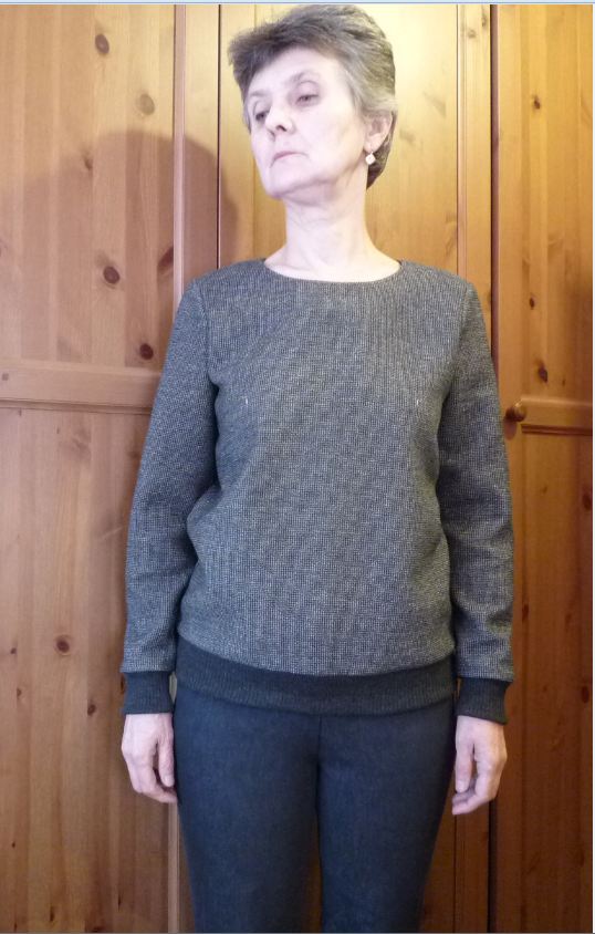 9925 Опубликовано 30 октября, 2017 Поделиться #1299 Опубликовано 30 октября, 2017 "Домашнее задание " Попытка № 2Построила манекен свитшота с конкретными мерками(мерки взяты с выкройки свободной кофты, смоделированной в Топ-окне с манекена-облипки)(плечи на облипке неправильные, буду исправлять-переделывать...потом...). Прибавка по груди вышла 11см, по ширине груди = 1см, а по ширине спинки = аж 4см. К ширине рукава прибавила 7см.Затянула заплатками, развернула, построила лекало практически без исправлений Потом заметила, что при построении рукава отзеркалила линию проймы, наверно, как я делала раньше с выкройками в топ-окне, для сопряжения линий оката и проймы. Вроде рукав нормально получился...(затягивала нетворком и разворачивала целым рукавом) Все равно решила отшить пробник, чтоб проверить мой манекен для свитшотов. Тряпочку купила, как отходы производства местной швейной фабрики, на вес. Итальянская костюмка, правда отрезы максимум 55см шириной. Поэтому кроилось по "утка". Провиса нет, ткань толстенькая, напоминает неопрен немного.. и я совсем не умею фотографироваться (надо быстренько прибежать и принять красивую позу....трудно....). Спинка вышла широковатая...но зато удобная! Есть небольшая папоротка даже Небольшой заломчик у проймы оттого, что 1,5 см при размоделировании выточки бросила в пройму... Буду исправлять манекен - уменьшу ширину спинки, увеличу на 2см свободу по линии груди.У меня еще остались отрезы костюмки, жду флешмода по штанам..... Ольга Ссылка на сообщение Поделиться на другие сайты Поделиться
