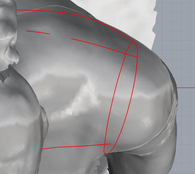 А когда сшиваем плоские лекала имеем такую пройму (зеленую):