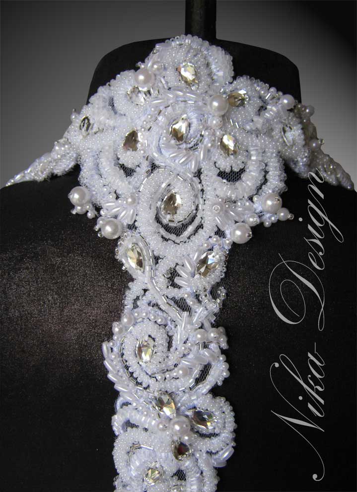NIka Опубликовано 18 августа, 2010 Автор Поделиться #1617 Опубликовано 18 августа, 2010 Прошу прощения, вчера уже не успела.На втором снимке - вид платья со стороны подкладки. Следующий снимок - последняя примерка платья с вышитыми деталями, фатин ещё не срезан. Детали приходилось стягивать ручными стежками на свадьбе, когда одевала невесту. Они получились тяжёлыми и от своего веса растягивались.Здесь маленькие хитрости застёжек. Использовала бюстгалтерные брители, для подстраховки. На спинке фрагмент расшивки крепился при помощи кнопок - упростило одевание платья.Пришлось в области груди и верхней части спинки делать полужесткую внутреннюю деталь, что обеспечило отличную посадку платья. Может моя технология покажется несовершенной, прийму все ваши предложения на этот счёт. Для облегчения процесса сборки пришлось заказать манекен, попросила его изготовить без женской груди, т.е. плоский. Т.к. у меня много худеньких клиенток, он пригодится и я давно мечтала о таком. Цепляю чашечки по размеру и всё. Спрашивайте - отвечу, ну и принимаются все предложения на рассмотрение. Ссылка на сообщение Поделиться на другие сайты Поделиться