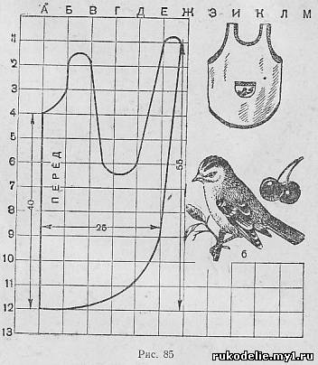 Из купона. Купоном в этом случае был кусок ткани с нарисованным на нем кроем фартука, кармана и лямок( на слово бретели эти полоски не тянули).