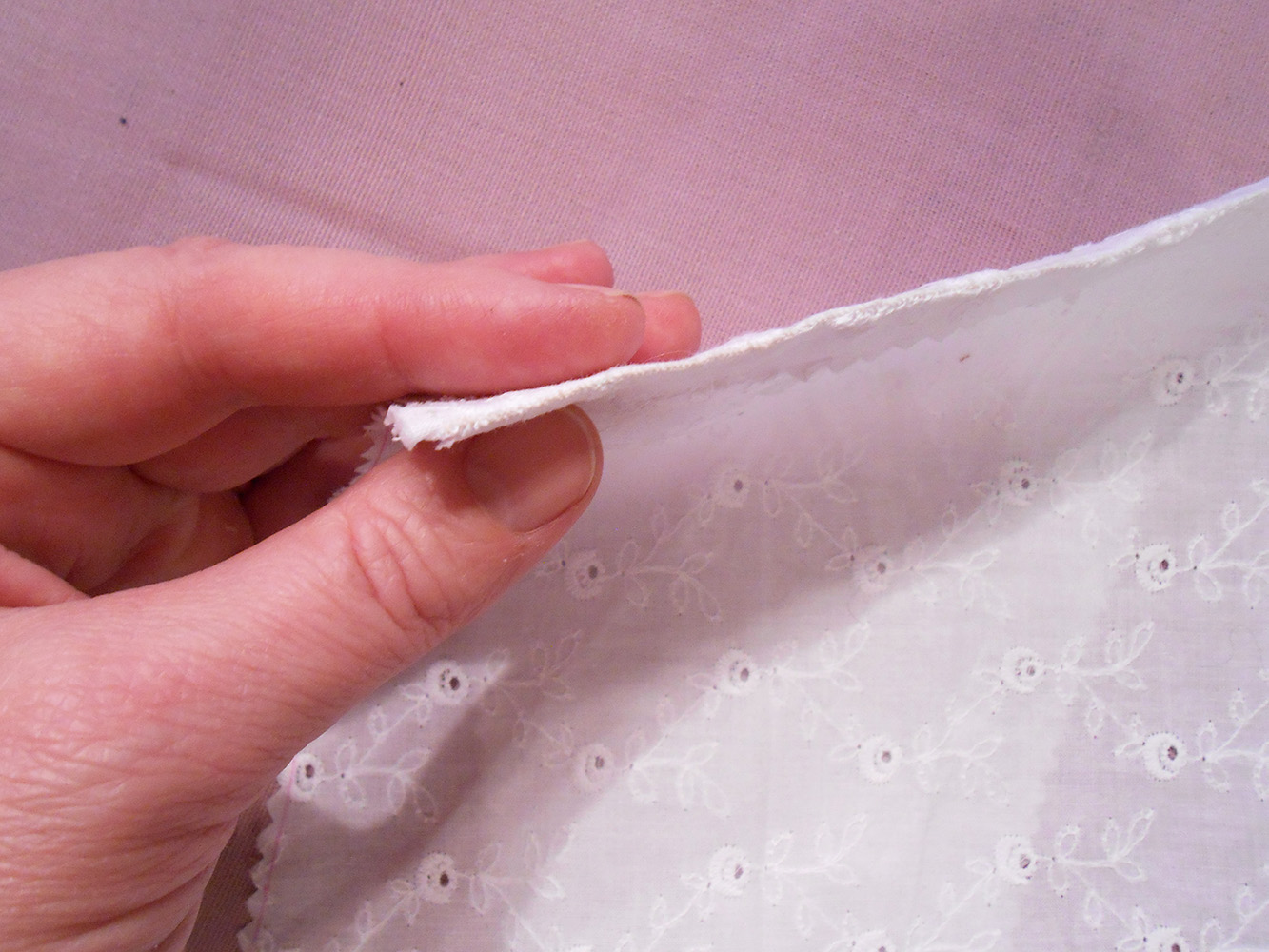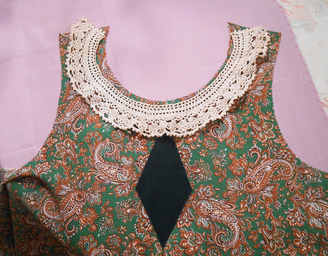 Мой фартук отверг и воротник, белый цвет он не принимает, завтра предложу ему тесьму серого цвета, если и ее не примет, то косая бейка и дело с концом!