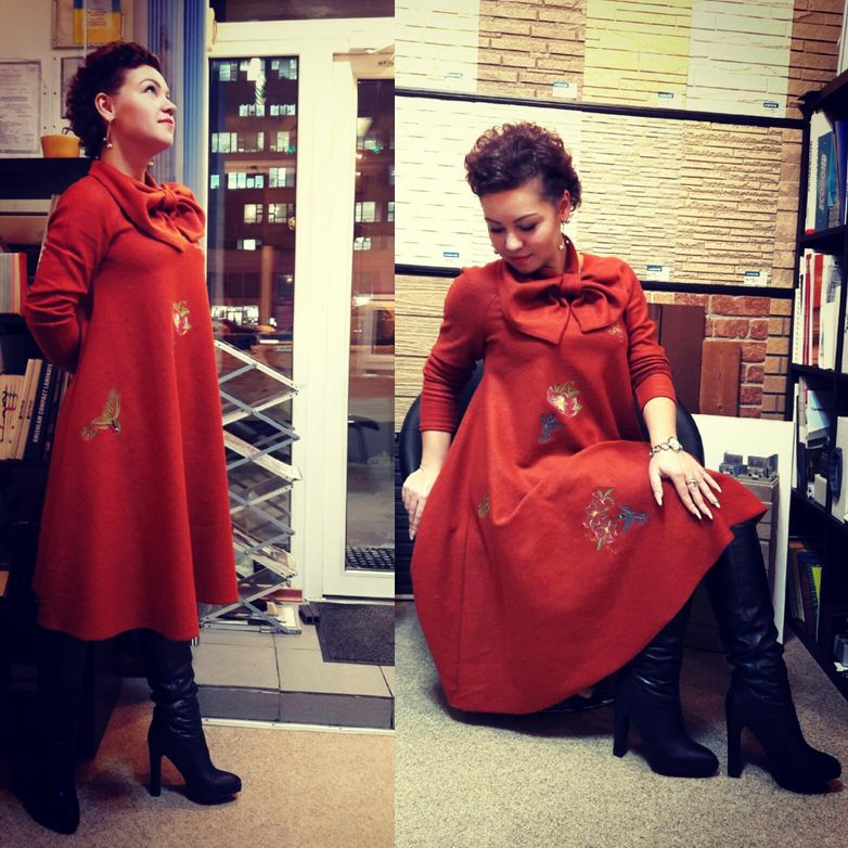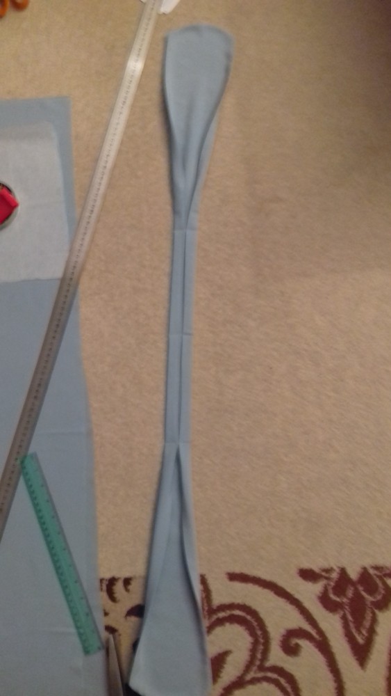 2. след.вариант- французская косынка, фото процесса шитья первой не сделала, в азарте быстро сшила. Получилось слишком под горло, решила еще одну сшить удлинив, чтоб носить бант на груди