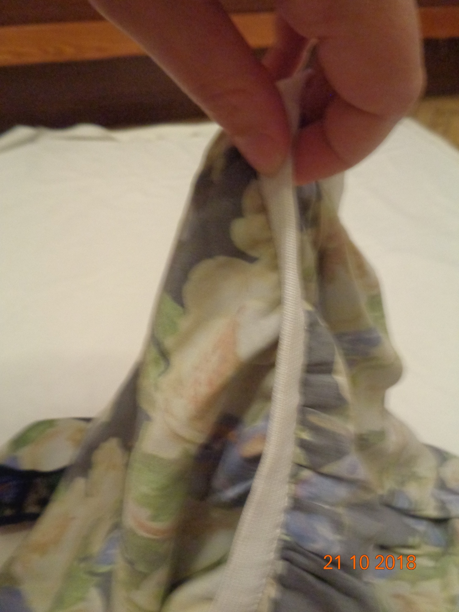 1. объемные цветы, при накладке сверху вы получите огромную погрешность и в итоге перекошенную натянутую кривую полочку и спинку, после того, как соедините с дублером.
