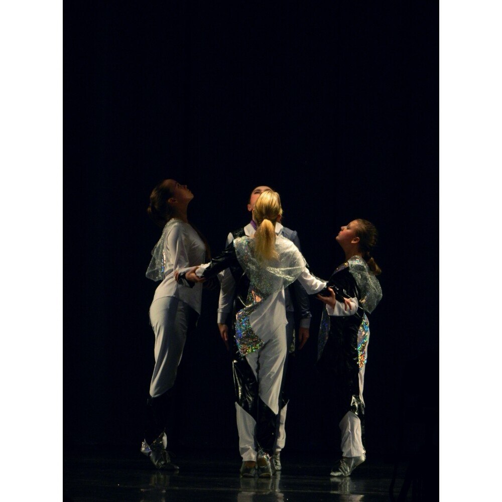 Hellina Опубликовано 24 ноября, 2018 Автор Поделиться #36 Опубликовано 24 ноября, 2018 (изменено) Пожалуй, сегодня расскажу о своей давней работе над костюмами к современному танцу. Не скажу, что танец очень интересный. Даже обидно, потому что музыка мне очень нравится. Я же её и нашла и предложила для танца. Но постановщик отнёсся как-то халтурно, на мой взгляд. Ладно. Я рассказываю о своей работе. А она мне удалась, на мой взгляд. Притом, это было первое такое конструирование в моей практике.К первому выступлению шила, как всегда, на подрыве. Пожалуй, это был самый большой из всех моих подвигов. Я в нём превзошла Золушку: она сшила за ночь 3 платья, а я- 4 с половиной костюма.Дочка успела вечером мне помочь- посмётывала части между собой. Но частей было много.Собственно, начала я, как всегда с эскиза. Вот он, сохранился. Чтобы воплотить картинку в жизнь я сделала макет из простынки, и прямо на тушке нарисовала линии, как наметила на эскизе.Потом порезала макет по нарисованным линиям, сделав из него выкройку, таким образом. Все части подписала, чтоб не перепутать, что из какой ткани кроить, и что с чем соединять. Тканей было 4: белый бифлекс, чёрное лаке, серебристый голографик на основе из чёрного трикотажа, и серебряная сетка на капюшоны.Сразу скажу, что на первое выступление с капюшонами я не успела, и даже края никак не обработала по низу штанин и рукавов. Солистке ваще не сшила верх- только штанишки. Вместо верха одели просто белую мужскую рубашку на выпуск.В том, чтобы делать раздельный костюм, а не комбез, был большой резон, ибо сегодня одна танцует, завтра другая, и рост у всех различается довольно сильно. А так- костюмчик почти безразмерный.Капюшоны в начале сняты, в конце танца их надевают глубоко, чтоб на лицо опускались.Костюм солистки не скажу, чтоб самый удачный. Получилось не совсем так, как виделось. Но уж что делать. Всякое случается. Но в целом, всё гармонично. И мне кажется, что костюм не последнюю роль сыграл, когда выступали на конкурсах, ибо танец получил неплохую оценку. Изменено 24 ноября, 2018 пользователем Hellina Моя тема на Сезоне страница VK Ссылка на сообщение Поделиться на другие сайты Поделиться