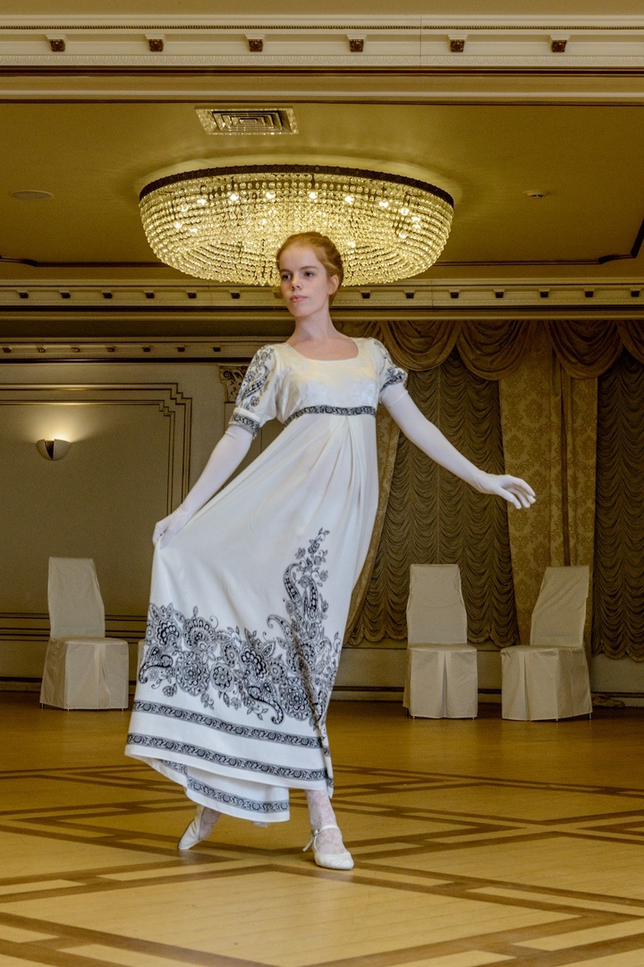 Hellina Опубликовано 4 декабря, 2018 Автор Поделиться #42 Опубликовано 4 декабря, 2018 (изменено) А это история костюма, вернее даже костюмов, благодаря которому я познакомилась с Сезоном. Как-то давно уже, когда мои девочки уже занимались в нынешнем танцевальном коллективе, но я ещё не взялась за него как следует, нам захотелось попасть на Новогодний Миракль в Шереметевском дворце, который уже много лет организуется там с участием коллективов нашего ДДЮ. Танцы, которые в то время у нас были, совсем не подходили по тематике к мероприятию. Но я уже поняла, что главное: главное, чтобы костюмчик сидел. Тем более, что благодаря моему предыдущему костюмчику, мы уже один раз там потусовались. Но об том костюмчике расскажу позднее, как-нибудь.А в этот раз, пораскинув мозгой, прикинув варианты, и припомнив виденные мной, в т.ч. в самом дворце, портреты графини Шереметевой (она же Ковалёва, она же Жемчугова, она же Элла Кацнельбоген) , я решила, что ампирное платье вполне сгодится, чтобы проникнуть на мероприятие без проблем.Подходящая занавеска у меня имелась в наличии (подруга одарила изрядным количеством), и кружавками по случаю затарилась всякими красивыми в мелкооптовом магазине. "Гуссарскую балладу" и "Войну и мир" смотрела, и даже "Гордость и предубеждение", ту, что с Коллином Фёртом, видала к тому времени. кажется. Но одно дело видеть, и совсем другое сшить. Причём сшить, чтоб это выглядело, ну... как с портрета. Надо ж знать КАК это достигается!Стала искать всякие картинки в интернете. И самой лучшей картинкой было платье, сшитое Joyscat. Но тогда я ещё не слышала о ней. Просто прошла по ссылке и очутилась на Сезоне!Тут нашлось всё: и картинки, и описания, и советы, и ссылки, и выкроки по Мюллеру. По нему я и строила. Хотя, по правде сказать, когда дошла почти до конца построения выкройки, у меня случился затык. Есть там один непонятный мне и по сию пору момент.Но я вышла из затруднительного положения путём измерения соответствующих линий на экране компьютера, и на своём чертеже, и пересчёте сложных моментов, путём составления математических пропорций. Поскольку танцевать в платье не планировалась, и дефицита ткани не было, то конечно, платье забабахала с шлейфом. И натурально, перчатки. Какой же ампир без перчаток?На них в моих закромах нашлась какая-то спортивная ткань. Тоже подарок уже другой подруги. Довольно плотная, слегка эластичная, совершенно не сыпучая.Для этого аккуратно распорола старые тканевые перчатки, ещё мамины, и использовала их как выкройку, просто дорисовав верх до нужной длины.Но остаётся голова!!!Причёска- само-собой, но её ведь надо чем-то украсить! Причём, как всегда, бюджетно. Решение было найдено. Мы взяли обычную детскую корону, которые во множестве продаются в детских магазинах, я подпилила лишнюю пластмассу до приемлемой конфигурации, мы закрасили её неприличный серебряный блеск золотой, кажется акриловой, краской, подходящего оттенка, и ещё приклеили туда некоторое количество жемчужинок и стразиков, причём стразики откуда-то выковыряли, кажется из детского-же браслетика, который пришёл в негодность. И вышла вполне пристойная графиньская диадема.Образ дополнили винтажные клипсы моей тётушки и пару-тройку ниток жемчуга.Разумеется, это ни разу не реконструкция, но довольно правильная стилизация с характерным кроем.Поскольку платье н