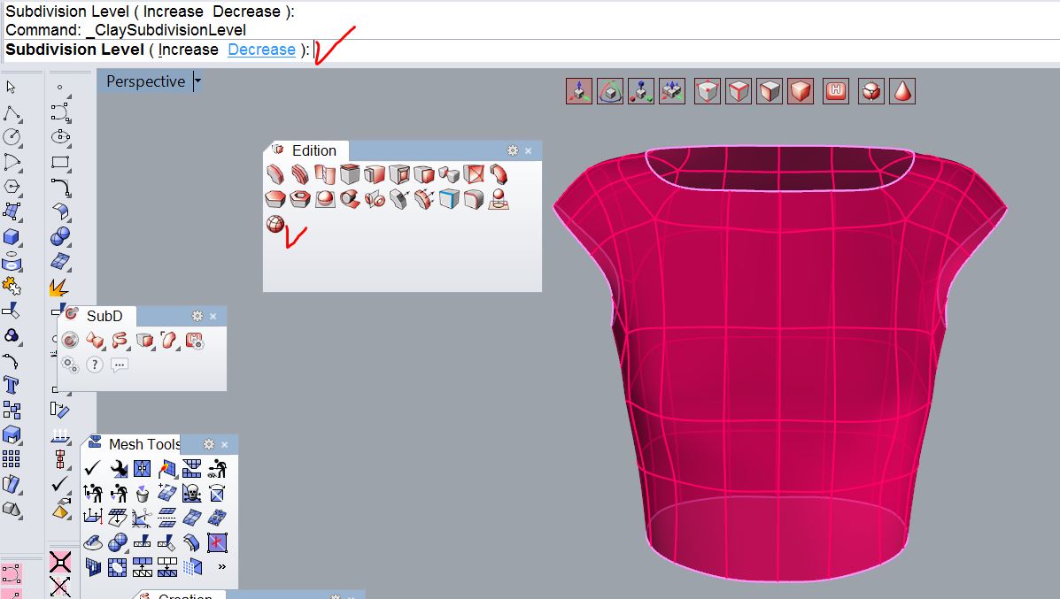ollya Опубликовано 10 февраля, 2019 Поделиться #37 Опубликовано 10 февраля, 2019 Если не трудно, снимите ролик про продуцирование меша после уменьшения количества полигонов.... Наверняка и в Рино можно задать свойства полигона, но интересно посмотреть на Ваш метод..Так нет метода:) Тупо нажимаю 2 кнопки)Если конвертировать сплайн- то будет три.1) конвертируем сплайн в clay surface шею и руки выдавила уже в Clayo2) можно конвертировать в меш- будет меш с 4 угольными гранями. А можно и не делать этого- просто командой Рино сделать триангуляцию.Рино уже понимает clay surface как меш.Количество полигонов зависит от уровня разбиений. Чтобы не лазить в опции, можно менять уровень кнопкой. increase будет увеличивать число разбиений, а decrease уменьшать Как я поняла, что сделать число граней меньше чем было хоть в сплайне, хоть clay surface не получится. Это уже только редуцировать в Рино.А больше сколько угодно.Меньше можно с помощью дециматора, но мне показалось некрасиво как то получается.И про перемещение с копированием с клавишей Alt- у меня тоже не работает, если тянуть манипулятором.Просто мышью надо тянуть, не обращая внимания на манипулятор. Ссылка на сообщение Поделиться на другие сайты Поделиться