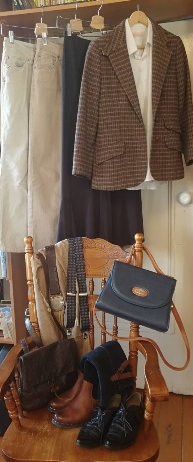 Grizly Опубликовано 8 октября, 2019 Поделиться #3519 Опубликовано 8 октября, 2019 В теме Оли-Звездопад появились шикарные иллюстрации англицкого стиля.И тут мне внезапно вспомнилось про еще одну мою вешалку, носимую несколько лет назад очень активно, но по определённым причинам подзабытую. Так что я её достала, встряхнула и примерила. Буду носить снова))Вот тут нет как таковых солистов и статистов - это хор. Пиджак, конечно, задаёт весь тон. Остальные вещи можно носить и в других верхах, но тут мне такой песенный строй особенно нравится. Пинджак правильный такой, с тремя карманАми, кожаными локотками, шлицей сзади, пуговицы имитированы под кожу. Вот брюк шерстяных нужного цвета нету, есть джинсы и вельветки (износились - надо шить!). К ним дополнением трикотажная юбка с асимметричным воланом. Да, я читала, что в англицком стиле нет места трикотажу, так что будем считать это имитацией)) обязательна белая рубашка или блузка. Блузка лучше по фигуре. Нету - надо шить! Ботиночек резных не было, имеются с отстрочкой. Плюс обычные ботинки, плюс сапожки. Аксессуары - ремень кожаный, шарф шелковый, подтяжки, сумки из кожи и одна под (у нее будет еще парадный выход в вешалке с пальто потеплее). Подтяжки просят на шею темно-синего платка, будем искать...И категорически без красной помады!!! С ней вид в этой вешалке становится вульгарным.Фото с балкона, сегодня +16 и очень солнечно. Последние фото сбежала внутрь - напекло. Пиждак сам по себе очень теплый, а еще и сапожки, плюсом солнышко сверху... Так что диапазон этой вешалки примерно +7+15. Завтра обещают +11, вот и проверим, сходим за хлебушком. Оля, у тебя очень гармоничная осень! В моей чуть меньше красного цвета. Придётся компенсировать красным вином) Большая просьба к модераторам подвысветлить слегка последнее фото. Увы, фотошоп мне пока неподвластен. Ссылка на сообщение Поделиться на другие сайты Поделиться