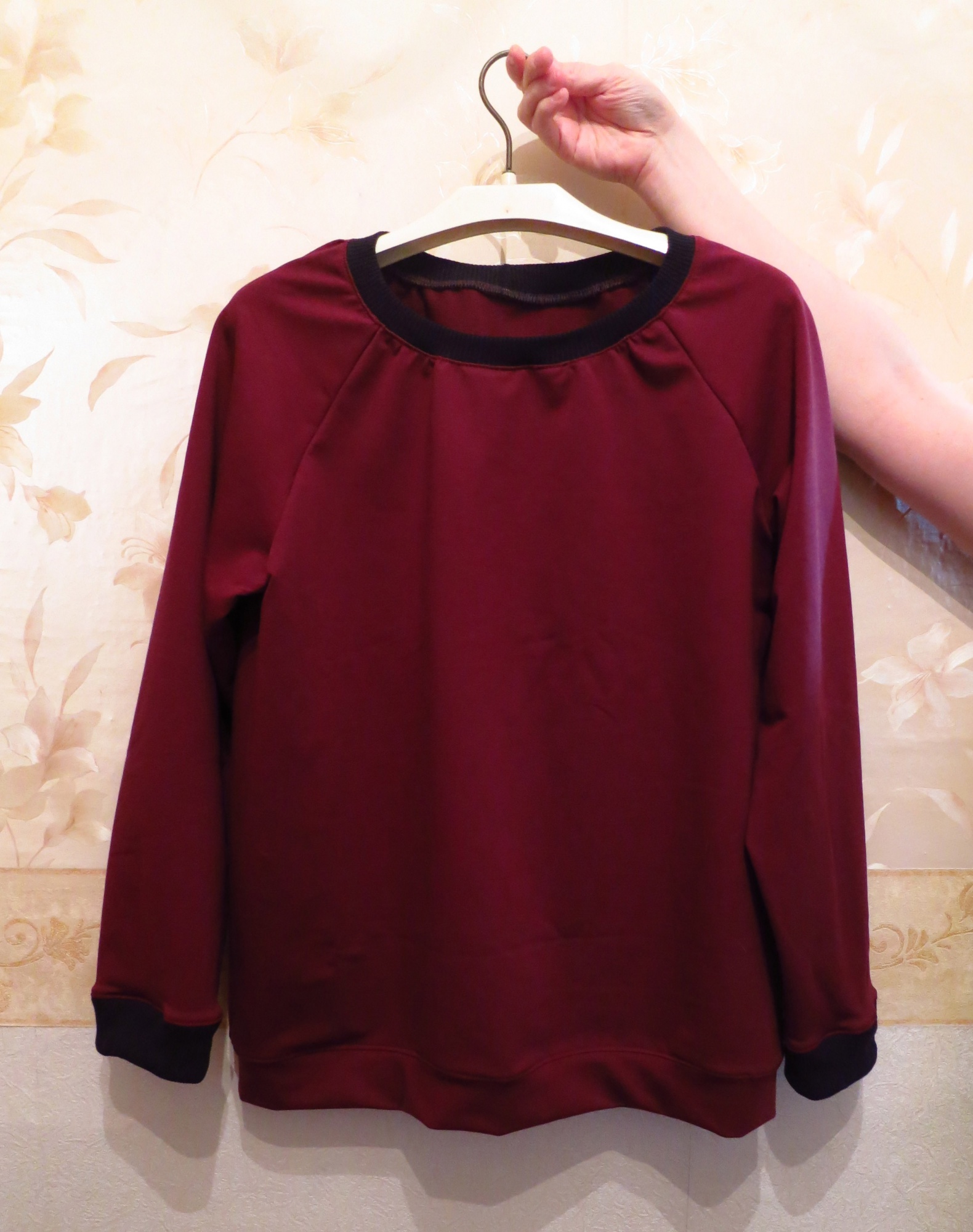 Hellina Опубликовано 19 марта, 2020 Поделиться #6492 Опубликовано 19 марта, 2020 Где тут моя финишная ленточка? Я добежала. Правда не знаю, каким лучиком правильнее сиять: футболки или блузки? В какой-то из них- точно. Поскольку со штанами случилась заминка, то быстрый свитшот. Выкройка мильён раз пользованная, из сюзанныВзяла вчера, разложилана хлопкеПорезала по быстрому, сострочила в кучкуТолько был затык с тем, что на манжеты и обтачку горловины пустить. В магазине ни рибаны, ни кашкорсе годящей по цвету не было. Фигня вопрос! Полезла в куль, в котором на протирку тряпки держу, из отслужившей своё одежды, нашла там подходящее чёрное- и вуаля! Даже погладить ещё не успела.А дитё спит- мерить не на кого. У них придумали ерундовину, что утром, поскольку на дистанционном обучении, надо зайти на сайт, типа отметится, что ты вроде учишься. Дурдом "Ромашка". Моя тема на Сезоне страница VK Ссылка на сообщение Поделиться на другие сайты Поделиться