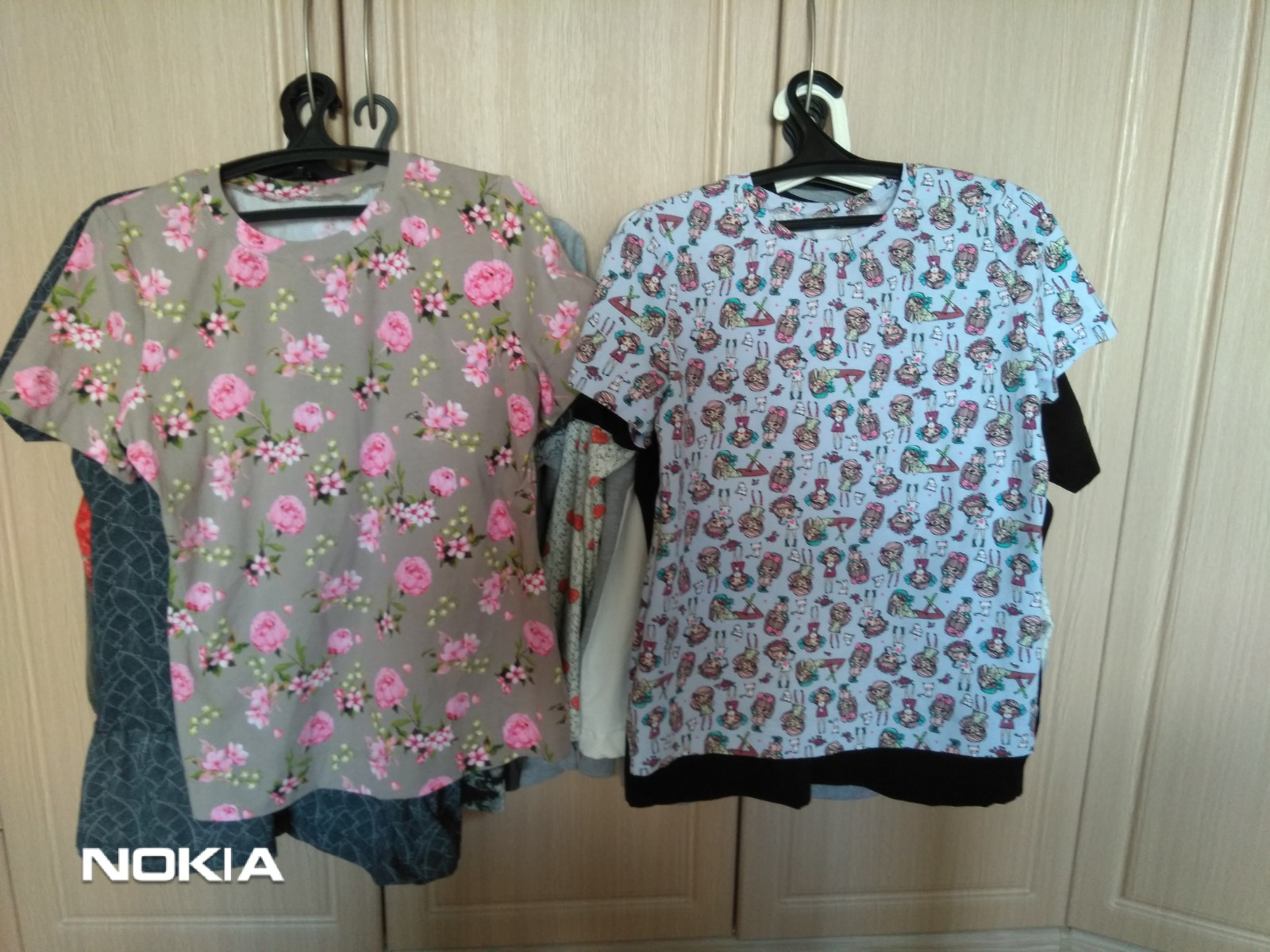 КапуткА Опубликовано 7 мая, 2020 Поделиться #6929 Опубликовано 7 мая, 2020 Ку, Таверна!Заглядываю, смотрю красивости - какие все молодцы!- и убегаю дальше на свою удаленку. Погрязла. На осмысленное шитьё не хватает, ковыряю по мелочи. Исключительно трикотаж. Тот редкий случай, когда шила себе. На днях достала распошивалку и подшила всё то, что копилось кучкой с февраля. Оно всё домашнее, ничего особенного.Получилось пять слоёв. Когда фотографировала, плечики снимала послойно.По порядку:1. Две домашние футболки, кулирка хб+лайкра. Бежевая с цветуёчками - это Оля-Импел мне кусочек на футболку подарила. Цветочек на стыке рукава и тушки случайно совпал. 2. Типа туника, тоже для дома и футболка дЕтю. Оборочка получилась спонтанно - оно почему-то сильно село при стирке, на 8см в длину. Стало коротковато, прилепила рюшечку. Видно, что оборочка чуть светлее - при стирке белая печать активно облезает. Для дома исключительно. Черная футболка - это пробник, воспитывала выкройку-реглан. Когда собрала, выяснилось, что дЕтю оно лучше, чем мне. Ну и зачем мне дома черная просторная майка? Кулирка хб+лайкра, тоненькая и шелковистая. Я из этой кулирки делала подкладку в худи с физическим принтом. Так что у дЕтя теперь полный кутюр, как у Шанель - подкладка и "блузочка" из одного материала :-)))3. Свитшот с БигБеном, спина и рукава - темно-серый меланж. Достался кусок купона с дырой, целую часть использовала. Дырявую ещё покручу, вдруг впишусь. Пижамка с зайкой, тёпленькая, штаны и спина - светло-серый меланж. Всё футер 2-нитка.4. Два свитшота. Футер. То, что просто серое - сшито по выкройке от Грассер, как-то давно Валя поделилась на Сезоне. Выкройка своего часа ожидала долго, дождалась. Ширину не меняла, добавила длины. И сделала пояс но спине цельный - чтобы уголки не загибались, если на них посидеть. Рибана точно в цвет.5. Водолазка (толстовато оно для водолазки, конечно) мужу из того же футера и ещё одна домашняя футболка-реглан мне. Футболка сшита по выкройке, откорректированной после черной футболки.Футера было много - 5м. После "серого" периода оказалось, что его осталось не так и много - 1,5м + выпады. Планов куча. И вся эта куча лежит трикотажной горкой в кресле - ожидает, когда порежу. Natalia K (@nataliak6224) • Фото и видео в Instagram Наталья (vk.com) Ссылка на сообщение Поделиться на другие сайты Поделиться