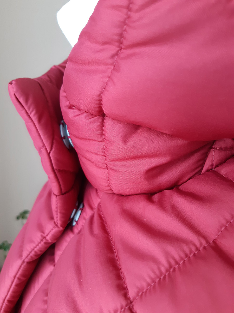 И верхний слой (плащевая) пристеган к этому пакету именно по этим линиям, где проходят строчки стёжки самого пакета. Технология сложная, но пуховик носился и ничего вообще снаружи на чёрном пуховике не проступает, вообще ничего.
