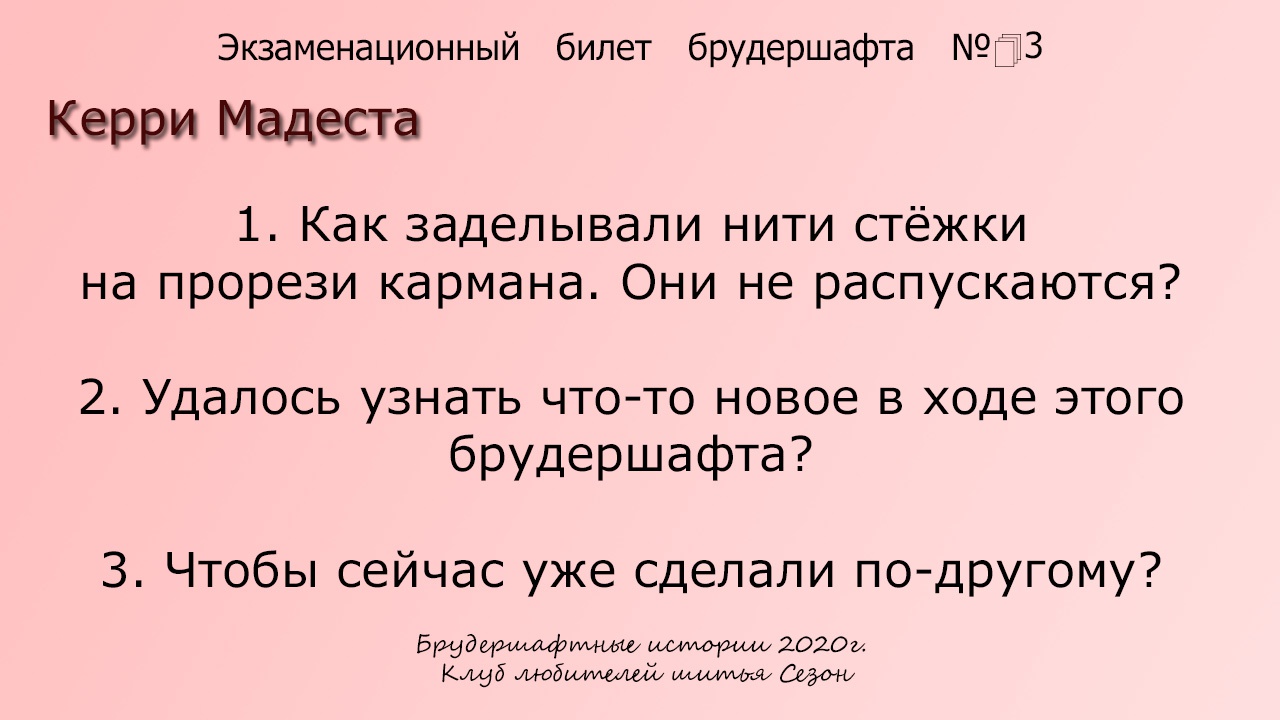 1.Как заделывали нитки стежки на кармане? Они не распускаются?
