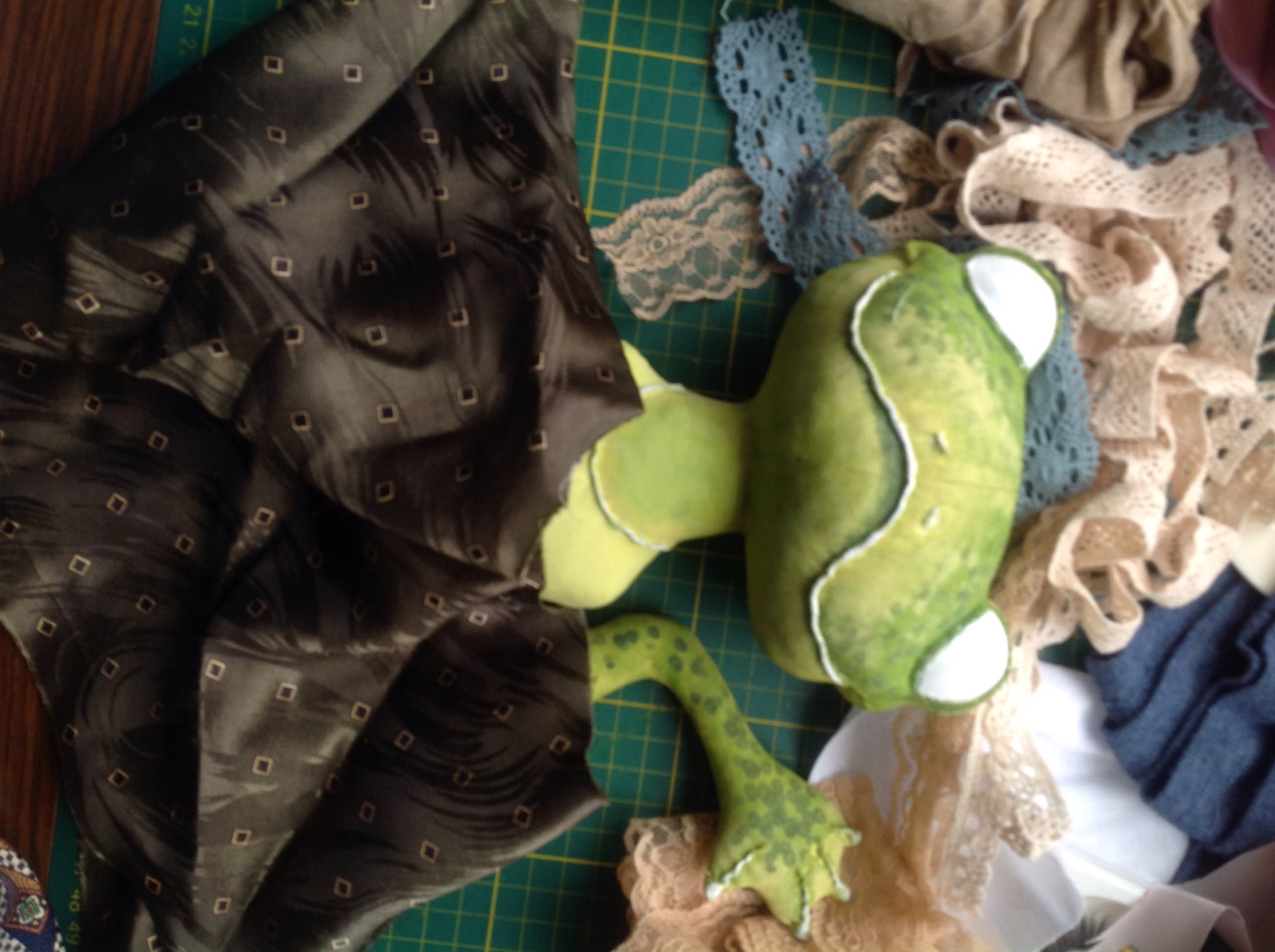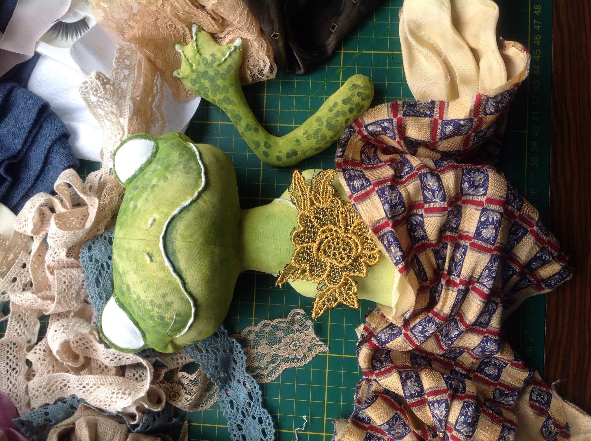 Люба реснички я покупала в рукодельном магазинчике там для кукол продают где то 5см 20р ,клеила в два слоя или накладные дешовые купить.Платьичко буду пробовать как на картинке из фатина.А лягушка интересная получается , я вторую тоже хочу зеленую.А белая краска акрил?