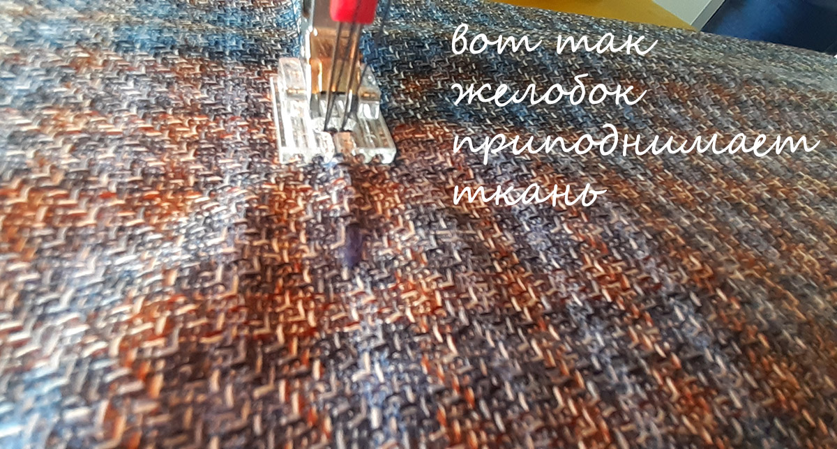Пластиковая деталька нужна для образования желобка, она вставляется в спец отверстия (они есть на игольной пластине швейной машинки). Пимпочка на пластиковой детали приподнимает ткань, образуя желобок, по краям которого строчат иглы.