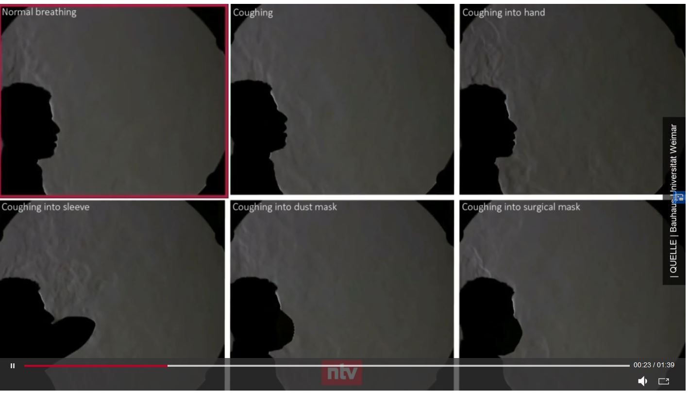 La_femme Опубликовано 2 апреля, 2020 Поделиться #296 Опубликовано 2 апреля, 2020 У меня в голове детская картинка из книги, человек в профиль и изо рта тянутся «конусы», подписано разговор - 1м, кашель - 3м, чихание - 6м. Это про то на какое расстояние разлетаются капли.БриНа, а вот от нашего университета Ваймар, снято через специальное стекло-дыхание с маской и без маскисмотреть где-то с 20 секунды.https://www.n-tv.de/mediathek/videos/panora...le21658876.html Я знаю, что ничего не знаю... моя темка на сезоне Инстаграм Ссылка на сообщение Поделиться на другие сайты Поделиться