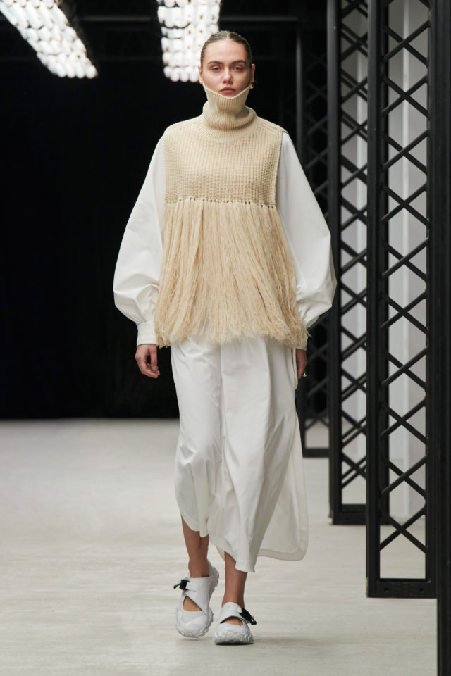 VeraPravda Опубликовано 1 мая, 2020 Поделиться #487 Опубликовано 1 мая, 2020 Попалась на глаза коллекция HYKE. Отметила свежие варианты с защитой горла и нижней части лица в холодный период после пандемии в виде вязанных манишек, которые являются и функциональными и декоративными частями одежды. Могут надеваться сверху пальто, а в помещении сверзу блузки или платья, интересная вещь и носить можно по разному, прямо или с разворотом на 90градусов. И кисти и круговой джакард. Блузки с пластроном-щитом. Длина пальто и парки, все сильно оверсайз 90года. В условиях дефицита финансовых ресурсов, но при наличии запасов тканей и пряжи, вполне себе можно добавить что-то функциональное к имеющимся вещам, оживить гардероб. Ссылка на сообщение Поделиться на другие сайты Поделиться