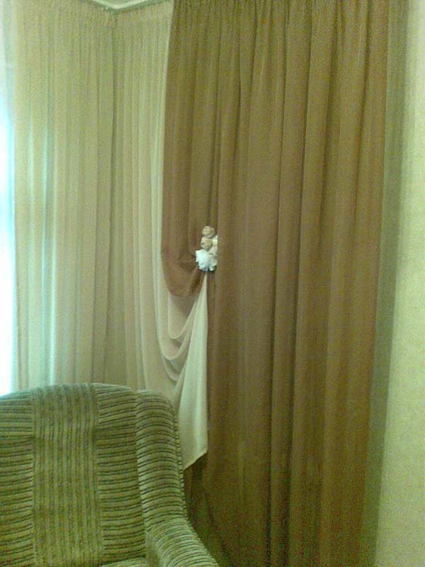 Валькирия Опубликовано 26 декабря, 2007 Поделиться #33 Опубликовано 26 декабря, 2007 еще хочу показать какие я сделала шторы в свое ателье, на снимке цвет уходит больше зеленый, тона более теплые.Карниз угловой. ой, не повернула фотку(((( когда женщине обрывают крылья - она летает на метле мой альбом http://club.season.ru/index.php?act=module...m&album=319 Ссылка на сообщение Поделиться на другие сайты Поделиться