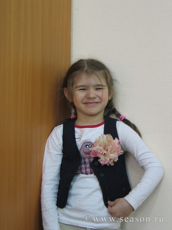 Ирина Мазаник Опубликовано 1 апреля, 2010 Автор Поделиться #1173 Опубликовано 1 апреля, 2010 Аня, напомнили мне про детские фото:).На занятие пришло к нам такое хитрованское чудо:). Зовут Маргарита, дома Маруся. Вела себя идеально, никому не мешала, делом занималась. Спела нам песенку и потребовала сфотографировать её с цветком:). "Взрослые" цветы не подошли, пришлось снимать с недособранным пионом:). Долго выбирала, какую фотографию показать и не смогла выбрать:) Мой блог Цветы из ткани Ссылка на сообщение Поделиться на другие сайты Поделиться