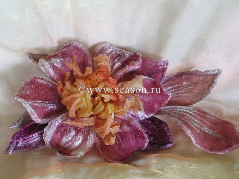 Ирина Мазаник Опубликовано 26 апреля, 2010 Автор Поделиться #1298 Опубликовано 26 апреля, 2010 lena65, а мы Вашей идеей с удовольствием воспользуемся:). Сходила в Вашу тему и тоже жду рассказа о том, как цветок делали. Почему он стал слегка жатым, как Вы его присобрали?Тук-тук! Можна к вам?Пробник накрутила из полосы по косой. Шов обтачивания можно было и не разутюживать так старательно.allbina, не можно, а нужно, особенно с таким вот пробником:). Мне нужна такая роза из твида, боюсь, не слишком ли толстый материал:(. А полоска одинаковая по толщине? И какой длины? Как думаете, можно сделать такую розу из двух тканей, в центре шифон, а потом уже твид? Это я всё о толщине розы беспокоюсь:) Таня TAHR напомнила о бархатных цветах:). Кстати, осеннюю коллекцию в основном из бархата я делала как городскую. Цветы в городе - именно так о ней и рассказывала.А началось всё с просьбы племянницы сделать ей цветы. Точнее, не просьбы - это моя прямая обязанность:)). Племянница живёт на три страны, кроме России, ещё Венгрия и Хорватия. Сама, к счастью, не девушка Cosmo, да и Европа к гламуру не располагает:). Так что цветы нужны были "обычные", городские, но "чтобы читались как цветы". На все мои просьбы рассказать, какие цветы она на себе видит, Аня туманно отвечала, что это не то чтобы городской шик или casual, но всё же...:).Сама я для себя давно решила, что носить буду плоские цветы, например, с большим удовольствием ношу герберы. И для Ани сделала цветы типа клематисов из расписанного бархата. Часть цветов даже не сфотографировала, дышали в спину:). Вот то немногое, что осталось. Эти цветы она уже относила, сейчас передо мной стоят совсем другие задачи:) Мой блог Цветы из ткани Ссылка на сообщение Поделиться на другие сайты Поделиться