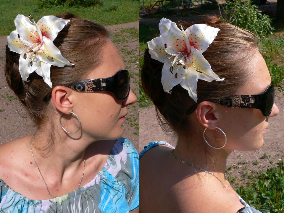 viktoria-xo Опубликовано 2 ноября, 2010 Поделиться #1509 Опубликовано 2 ноября, 2010 Спасибо большое. Очень приятно слышать (точнее читать) положительные отзывы такого профессионала как вы, Ирина:))Не, паяльника у меня в доме нет))) ручками над свечечкой в основном)) понравилась мне такая техника обработки - полужесткая или ка ее еще обозвать можно)) нежные лепесточки получаются. На счет цветов - в смысле цветового решения. В основном это разноцветные кусманчики тканюшки, оставшиеся от швейных заказов. Один из них - довольно внушительных размеров - молочно-белый плотный нетянущийся атлас. Очень мне он нравится. С ним то меня и понесло. Лилия , которая на фото - крашенная. Да и еще много таких есть. )) Цветы действительно просто обожаю. Везде и всюду) Самой очень нравится малюсенькая орхидейка , которая на фото тоже есть. не знаю почему - вроде и не красила ничего и особо не старалась - а смотрится действительно очень натурально - подарила младшей сестренке - ей всего 8 - и она тоже без ума от цветов - носит его на ободке. и просто как заколочку. Сама ношу тоже по-разному - очень люблю в качестве брошек, на ободке и просто в прическе. Шунька, спасибо. Самой очень лилия нравится - этим летом повтора три сделала - девчонки как горячие пирожки разбирали))) Вот несколько фоток - цветы , правда, на подружке - но так удобнее выбрать правильный ракурс для них. Если вы думаете, что сможете или нет - вы в любом случае правы. (с.) Ссылка на сообщение Поделиться на другие сайты Поделиться