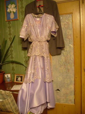 Этот комплект на"гражданскую войну" сшился в авральном режиме за 1 неделю, под телефонную истерику заказчицы "скорее, скорее!". Я, наверное, больше времени тратила на телефон, чем на шитьё. На коричневое платье пришлось в результате 2 примерки, на сиреневое- только одна. У клиентки впридачу оказалась сложная фигура- большой бюст, сколиоз и разная высота плеч. В результате, каждая примерка длилась не менее двух часов. Теперь, мне кажется, я понимаю Ламанову...)))