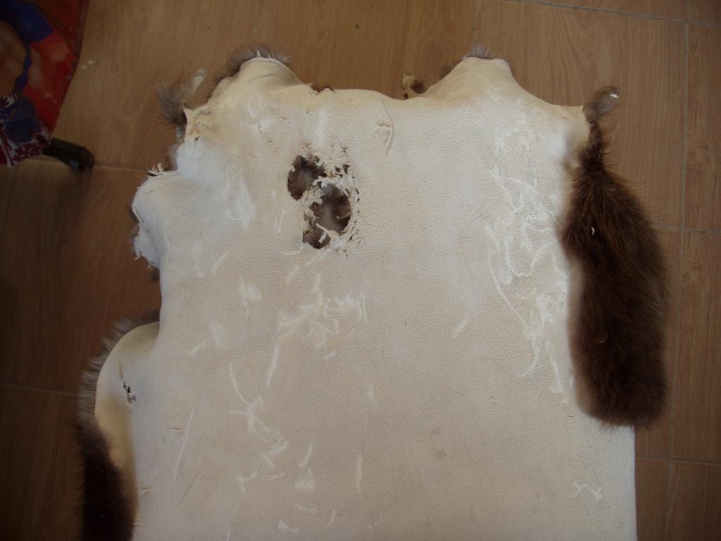 Будущий Кузьмич Опубликовано 7 марта, 2012 Поделиться #2465 Опубликовано 7 марта, 2012 Вот она шкура.Выделка отличная,вся проблема в том,что бобёр стреляный в лопатку,от дроби достсточно большой сноп образовал решето.Рядом с фоткой где линейка положена на один сантиметр выше,тк там мелкие дырки от дроби.Хочу сшить жене шубу,но пока не рискую запороть всё-начал с малого(например куртку лесную для себя))))))))))))).Проблема в том,что шкуры следующие ещё не пришли,тк сушатся в достаточном отдалении от меня(потом их на выделку)единственное сухая дома ещё одна лежит,но она не канадского бобра,а нашего,соломенная.Кусок вставить пока не получится я так понимаю от следующих шкур. Всё,что меня не убивает делает меня сильнее.(с) Ссылка на сообщение Поделиться на другие сайты Поделиться