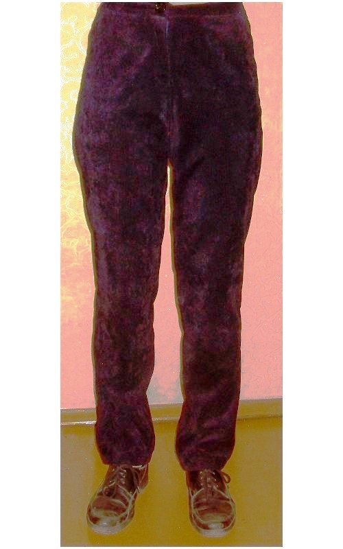 Добавлю свои пять копеек. Про фигуру - соглашусь с предыдущим оратором. Есть небольшая особенность - "галифе". Отсюда - более низкая высота бедра и при построении по Мюллеру при определении линии бедер нужно брать самую маленькую цифру убавки от высоты сидения. Боковая линия брюк будет несколько не стандартной: сверху более плоской (ориентируйтесь на линию бока в Вашем фото в колготках). И еще: высокие брюки на мой взгляд, абсолютно не Ваши... Вам нужно всегда занижать линию талии (не имеется ввиду сильно, на 5 -7 см.) - улучшится посадка и пропорции будут правильнее. Но это ИМХО чистой воды...