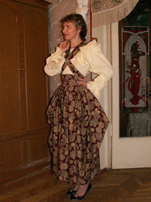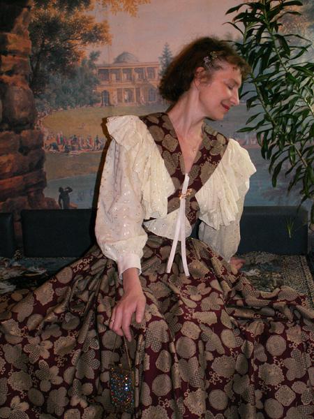 Бурлакова Фрося Опубликовано 9 января, 2008 Автор Поделиться #92 Опубликовано 9 января, 2008 Достав из своих необъятных шкафов несколько блузок романтического стиля и подходящего цвета, не отказала себе в удовольствии покрасоваться маненько. Драпировка поддержана стразовыми пуговицами. Это стиль модерн, потому пуговицу на бретеле я заменила брошкой-ящерицей, типичный для модерна мотив. Для стиля есть налобная подвеска, есть сумочка самодельная или антикварная, есть, в конце концов, интерьер!... Всегда всех стройней, розовее и вышеРучное шитьё в режиме онлайн Ссылка на сообщение Поделиться на другие сайты Поделиться
