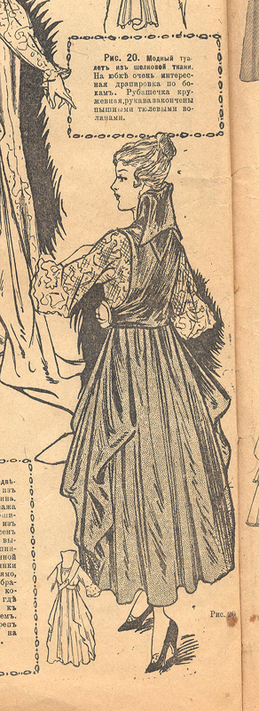 Бурлакова Фрося Опубликовано 9 января, 2008 Автор Поделиться #96 Опубликовано 9 января, 2008 Спасибо всем за добрые слова и любопытство.Как часто, меня интересуют необычные, нетривиальные вещи, стильные и интересного, возможно забытого или непривычного кроя, которые на каждом углу не валяются... Сперва о простом. Те. о 40 кусочках. Моделирование лифа выглядит так.Пояс - верх 6 деталей, низ 6 деталей, двойной дублюр - 12 деталей, всего - 24.Спинка - верх 4 детали, низ 4 детали, всего 8, с поясом - 32.Бретели. Цельная - 2 детали (верх и низ), разрезная - 4 детали (2 верх, 2 низ). Всего 38 деталей.Дальше, сантюр - 1Кромка верхнего края пояса - 1 (это всё внутренние пришивные детальки, не клей)Плечевые кромки - 2Кромки бретелей, выреза и пройм спинки - 4 Итого мозаика из 46 кусочков.Материал позволял обойтись без дублюра на бретелях и спинке, а то бы еще 14 кусочков добавилось. Пояс на двойном дублюре, шнип переда 6 см, спинки 2,5 см. Бретели вшиты в боковые швы пояса. Чтобы боковые швы анфас не толстили, они смещены к переду на 2 см. Для моделирования пояса использована специальная основа пояс-корсаж (а не низ лифа).Застёжка - молния по среднему шву спинки.Бретели перекрещены в ложбинке на груди, поэтому понадобилось специальное конструирование (обычная основа лифа в этом месте имеет избыток и для моделирования в данном случае не годится).Лиф этот, несмотря на то, что его "мало" - благодаря конструкции - затянутый, спинка прилегает и не топорщится. На мой взгляд, перекрещенные на груди бретели - это кокетливый намёк на тогдашний "стиль милитэр", типа перевязи на мундире, ведь шла Первая Мировая...Забавно, но тогда подобная длина была писком моды, считалась "короткой" и даже "рискованно короткой". Убыль мужчин вынуждала тогдашних дамочек идти на такие страшные риски! О конструкции юбчонки - чуть-чуть попозже. Всегда всех стройней, розовее и вышеРучное шитьё в режиме онлайн Ссылка на сообщение Поделиться на другие сайты Поделиться