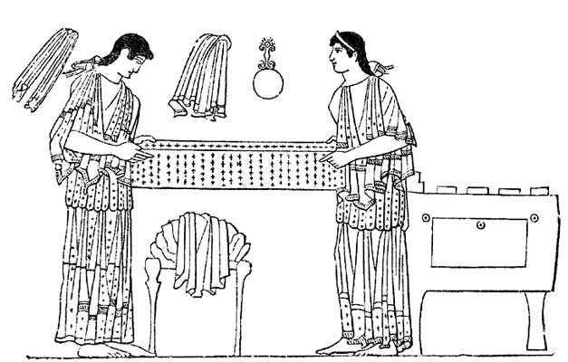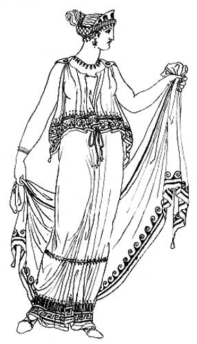 BriNa Опубликовано 13 декабря, 2007 Поделиться #80 Опубликовано 13 декабря, 2007 Относится к делу.Для своей одежды греки использовали мягкие, эластичные, прекрасно драпирующиеся ткани. Ткани ткали ручным способом на вертикальном станке шириной до двух метров. Искусство ткачества ценилось очень высоко. Согласно мифологии все богини Олимпа и другие героини были искусными ткачихами, состязались между собой в этом ремесле. Волокнистый состав греческих тканей — шерсть или лен. К хлопку греки отнеслись с удивлением, увидев его впервые в Индии во время похода Александра Македонского: они называли его «шерстью дерева», Основной интерес греков привлекала не конструктивная, а живописно-пластическая сторона костюма. Ткани с рисунком, распространенные в период греческой архаики, в классический период (V — IV вв. до н. э.) были вытеснены одноцветными синими, красными, пурпурными, зелеными, желтыми, коричневыми и особенно белыми тканями. Черный цвет не использовался в греческом костюме. Траурные цвета — серый и коричневый. Одноцветные ткани украшались каймой вышивки, аппликации или раскраски. Узоры орнамента связаны с природой, носят стилизованный геометрический или растительный характер, Это — меандр, критская волна, пальметта. Орнамент ритмичен, раппорт строится по горизонтали (рис. 1). В сочетании с вертикальным направлением линий драпировки это делает складки особенно четкими и выразительными, подчеркивает красоту и пластику движений.В романе ученого-палеонтолога и писателя И. Ефремова «Таис Афинская» имеется интересное описание цветового решения костюма гречанки: «Тончайший ионийский хитон Наннион прикрыла синим, вышитым золотом химатионом с обычным бордюром из крючковидных стилизованных волн по нижнему краю. По восточной моде химатион гетеры был наброшен на ее правое плечо и через спину подхвачен пряжкой на левом боку. Таис была одета розовой прозрачной, поставленной из Персии или Индии тканью хитона, собранного в мягкие складки и зашпиленного на плечах пятью серебряными булавками. Серый химатион с каймой из синих нарциссов окутывал ее от пояса до щиколоток маленьких ног, одетых в сандалии с узкими посеребренными ремешками». Вот здесь более подробная статья. _ Sine ira et studia _ Ссылка на сообщение Поделиться на другие сайты Поделиться
