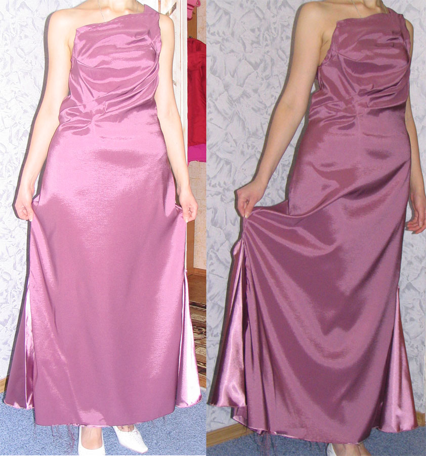 Ольчик Опубликовано 9 декабря, 2007 Автор Поделиться #4 Опубликовано 9 декабря, 2007 Спасибо за советы. Предполагается вообще то две бретели, только одна так высоко как показана, а вторая начинается чуть пониже. Я вот не знаю, как их сделать или отдельно пришивать, или сделать как широкую косую бейку, которая окантовывает пройму и выходит в бретель. И наверное не лицевой стороной, а изнаночной, где атласный блеск. Еще предполагались клинья, я только забыла сколько их намечалось, надо посчитать Впереди один высокий, до колена, потом средний, как по бокам и сзади, один низкий. Это что касается переда, а сзади еще 2 мелких клина. Но думаю, что это будет тяжеловато смотреться и наверное надо заменить на шифон или органзу, только вот не знаю, что лучше. Мне больше нравится органза, но она вроде жестковата. И думала заменить эти клинья на вот такую обработку. Что скажете? На счет фотографий согласна, жуткие... Я почему то получилась безумно толстой. Талия и есть немного выше, т.к. нет бретелей и мне пришлось все платье заправить в лиф, да еще и фотик у нас барахлит, муж пока зафоткал, эта конструкция успела опуститься :).Честно говоря я о декоре почти не думала, хотелось только на складки положить клеящиеся стразы. А вообще изначально, я хотела платье летящее внизу. Но не предусмотрела, что ткань будет так тяжеловата. Мы с мужем занимаемся (для себя) бальными танцами и хотелось иметь платье, ну не для бальных танцев конкретно(т.к. там почти все садится на купальник), а типа вечернего, но чтобы оно (в случае чего) красиво смотрелось в танце.Во как написала... ;) надеюсь меня хоть кто-то понял.Наверное я его все таки перекрою и сделаю по-другому...Может так низ оформить? Ссылка на сообщение Поделиться на другие сайты Поделиться