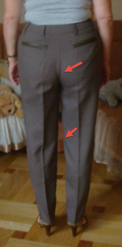 Natamoda Опубликовано 4 октября, 2016 Поделиться #3356 Опубликовано 4 октября, 2016 (изменено) Покажу сегодня дистанционные брюки.Заказ был на классические узкие брючки. Сразу предупредила клиентку, что для таких брюк требует очень тщательное ВТО, не все ткани можно так выутюжить. В виртуальной примерке закладывалась натуральная шерсть, а шились из сухой полушерсти. Отсюда разница между виртуальной примеркой и реальными брюками.Примерку я не видела. Клиентка говорит, что ничего не меняла в лекалах, только удлинила брюки на каблук. Фигура слегка асимметричная, поэтому лекала на правую и левую половинку отдельноКлиентка говорит, что в зеркале брюки смотрятся лучше, чем на фото, сама увидела, что нужно сильнее оттягивать средний шов сидения сзади (постарается растянуть шов в готовых брюках). (вообще, на посадку брюк надо смотреть через недели 2 носки, когда задняя половинка в области ягодиц сама вытянется, насколько ей надо, и наоборот, идеально сидящие брюки через некоторое время приходится ушивать)Так как она будет ещё шить брюки по этим лекалам, я предложила внести такие исправления в лекалаУвеличить длину шага спинки за счёт смещения линии сидения к боку и на такую же величину выпустить из бокового шва. Почему нельзя просто удлинить шаговой шов за счёт расширения в шаговом шве? Потому что штанина будет натягиваться на коленку с внутренней стороны ноги.Когда шов сидения удлинится, брюки будут свободней в бёдрах, хотя ширина брюк по бёдрам останется такой же Изменено 4 октября, 2016 пользователем Natamoda Мой блог 3Д лекала дистанционно Ссылка на сообщение Поделиться на другие сайты Поделиться