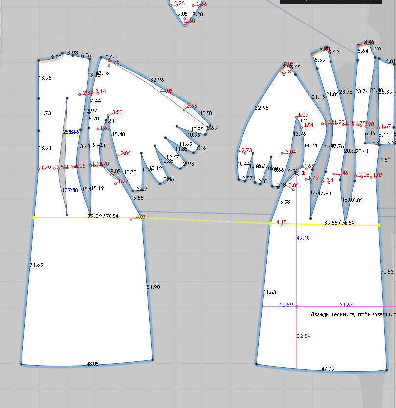 Natamoda Опубликовано 22 июля, 2020 Поделиться #3868 Опубликовано 22 июля, 2020 Не знаю, как сделала Юля, я бы разрезала лекала вдоль вытачек, уменьшила бы равномерно по линии бёдер, а потом склеила бы лекала по юбке., по линии низа объём тоже уменьшится, чтобы сохранился зазор на швы по линии груди. (то есть, точку поворота лекал при уменьшении делать от линии груди.) Показала на примере одной вытачки. По другим вытачкам делается аналогично Валя 1 Мой блог 3Д лекала дистанционно Ссылка на сообщение Поделиться на другие сайты Поделиться